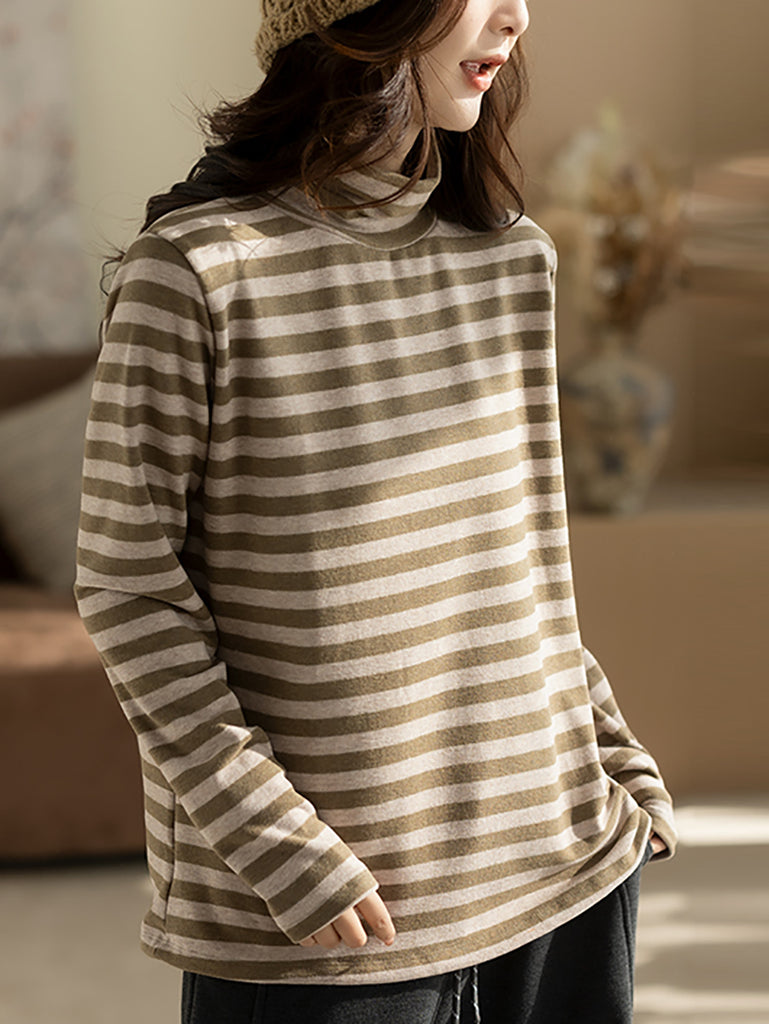Ženski jesenski umjetnički prugasti pulover s polu-rolkom u boji