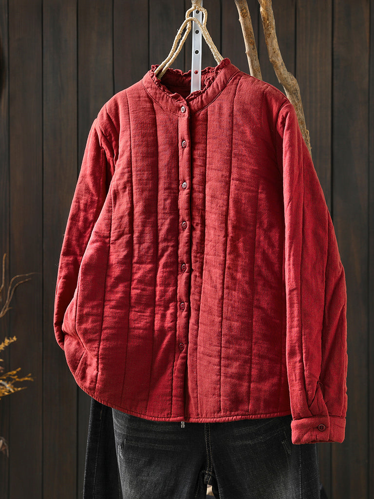 Ženski zimski kaput s ovratnikom u čistoj boji