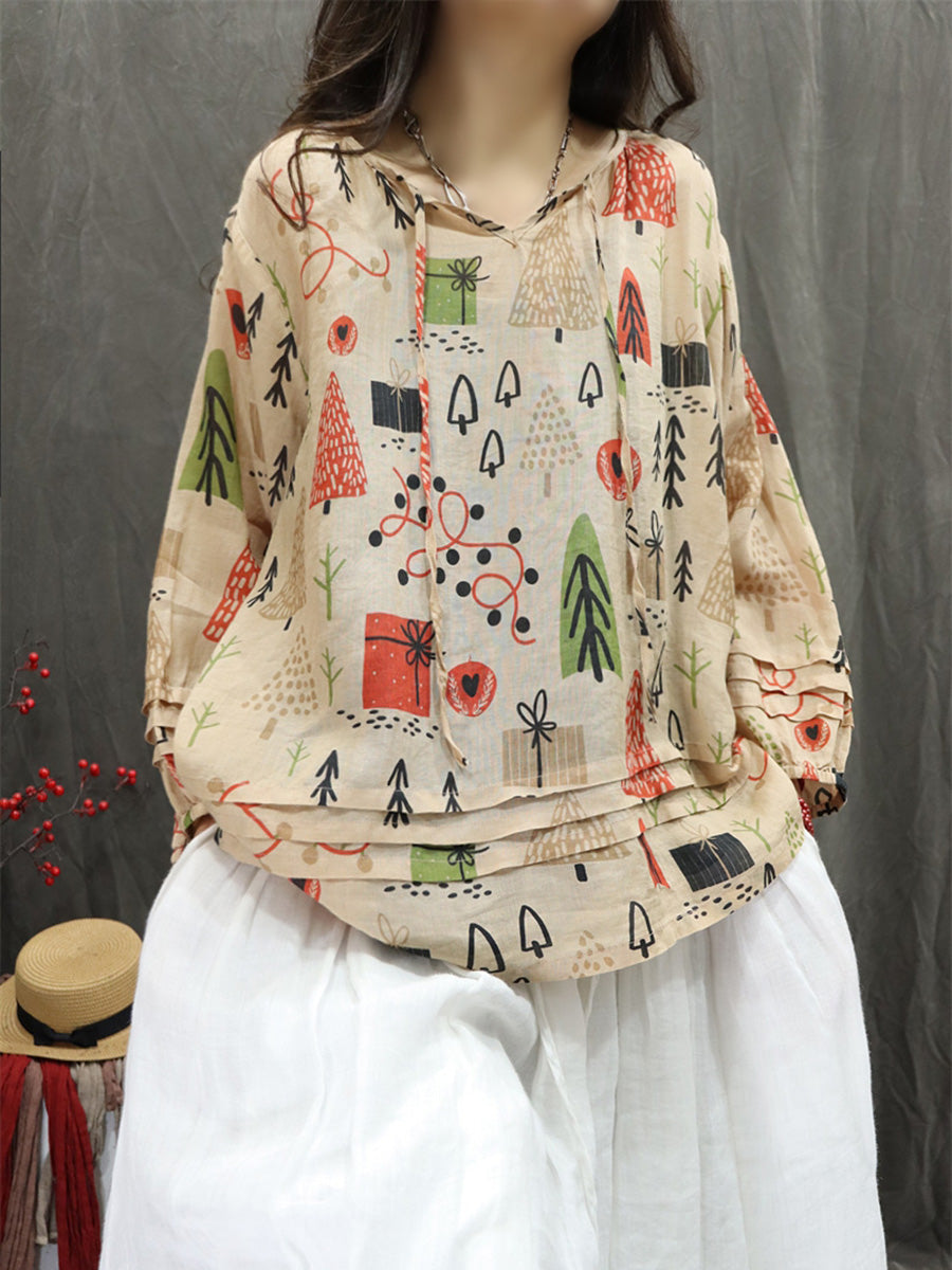 Ženska ljetna umjetnička 100% Ramie košulja s kapuljačom i cvijetom