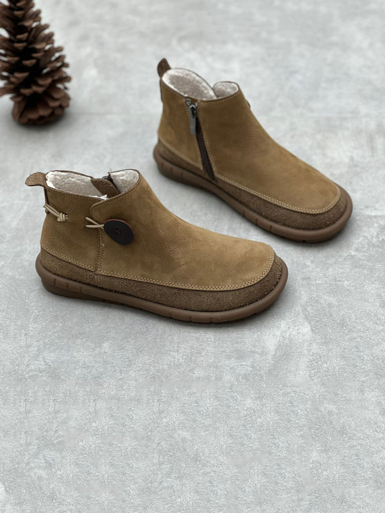 Ženske retro ravne cipele od prave kože podstavljene od flisa
