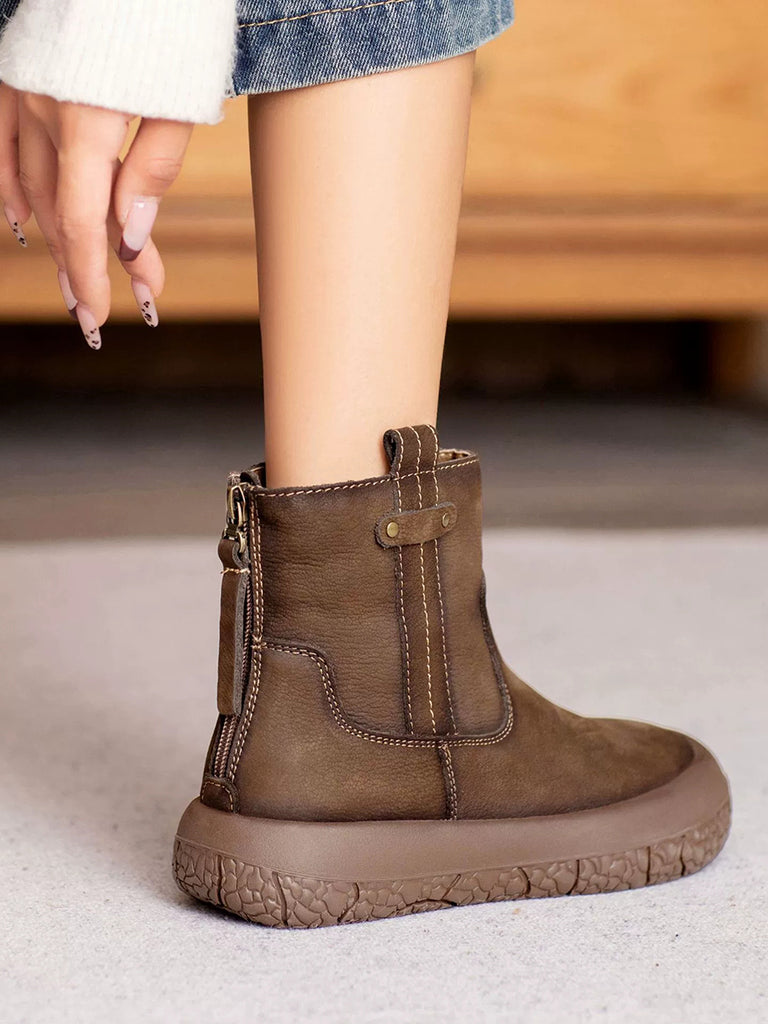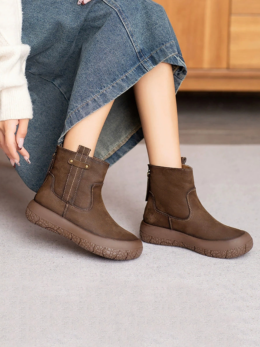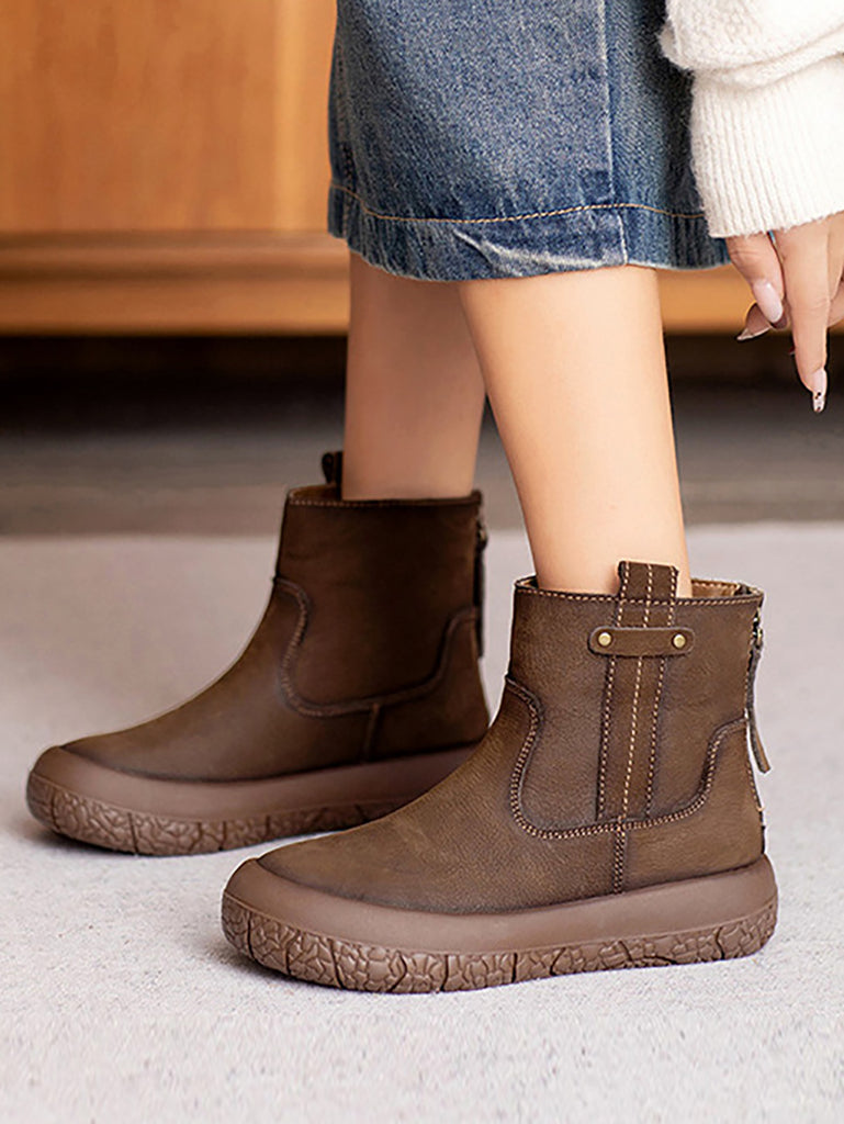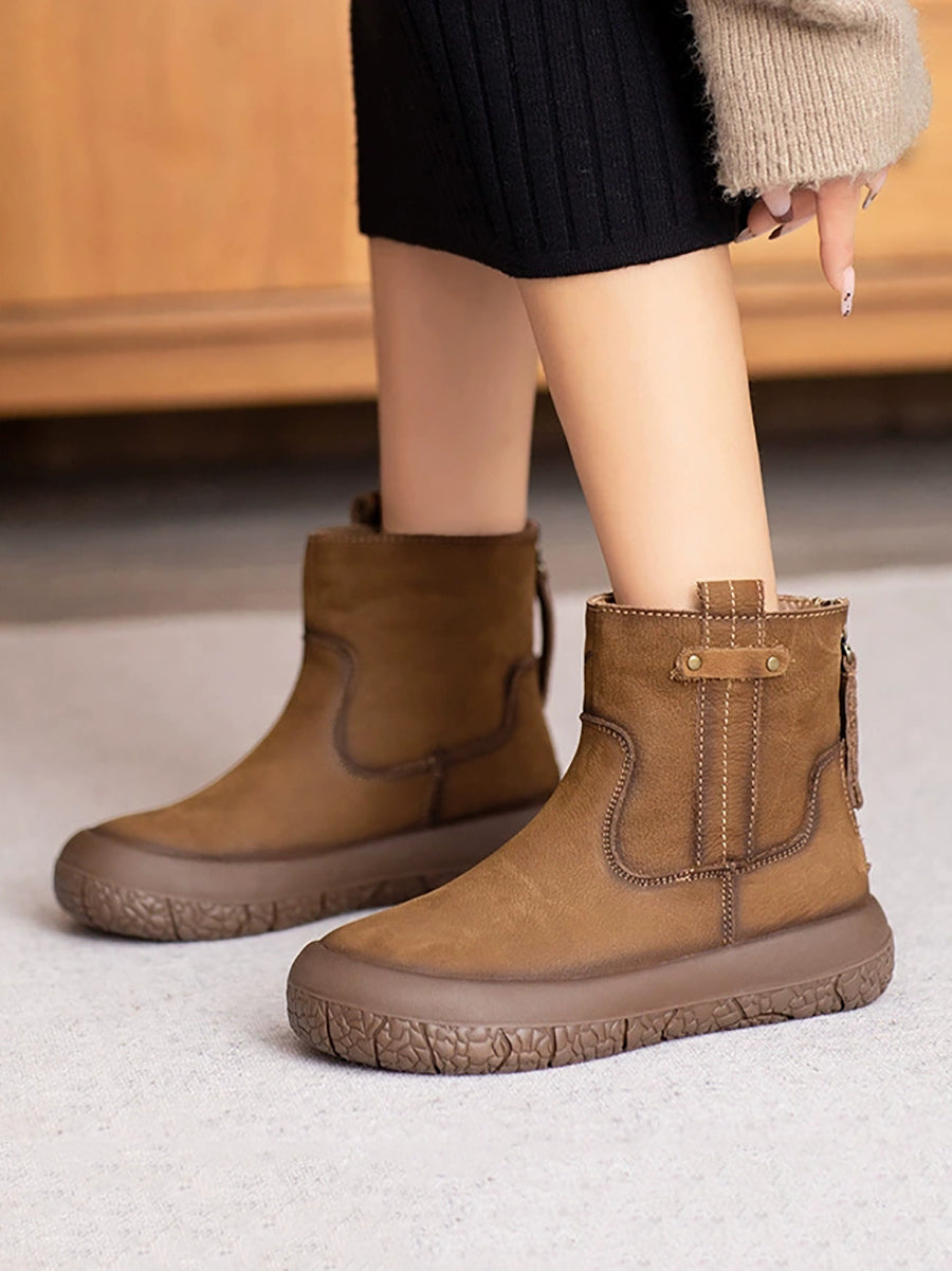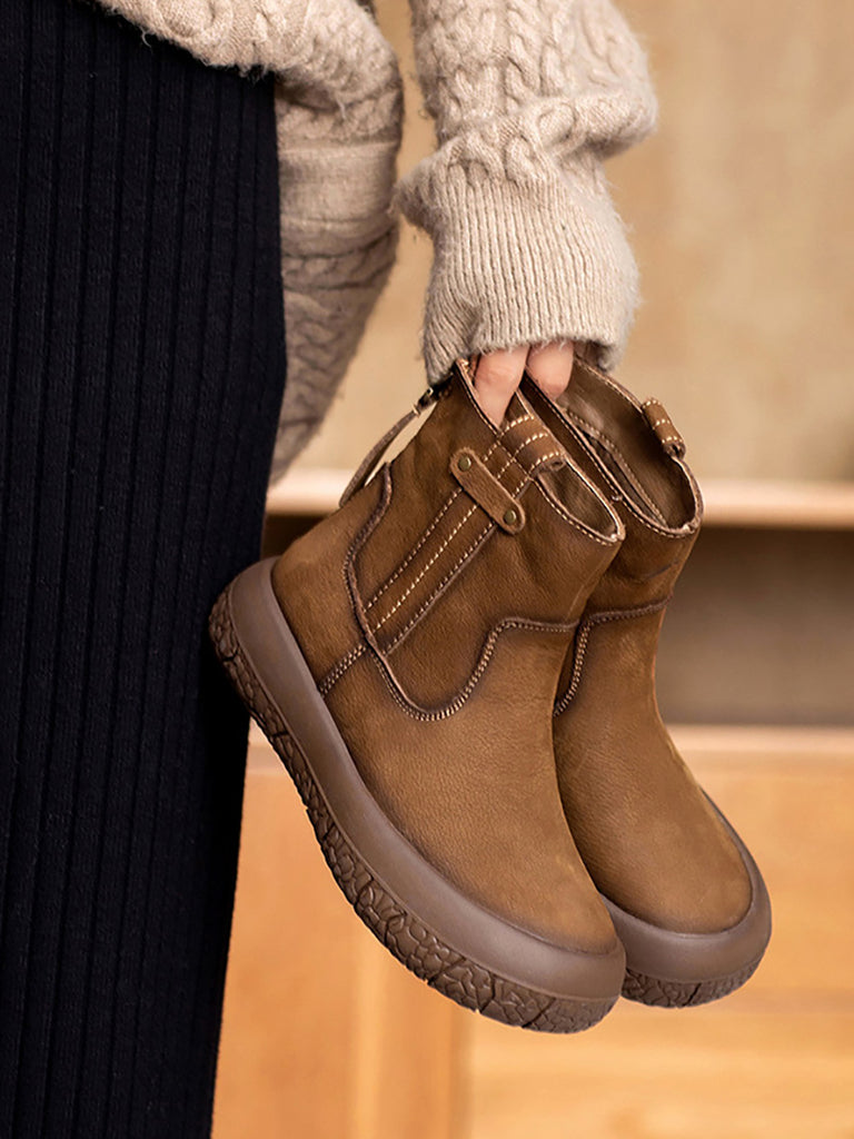 Ženske zimske retro kožne gležnjače s flis podstavom