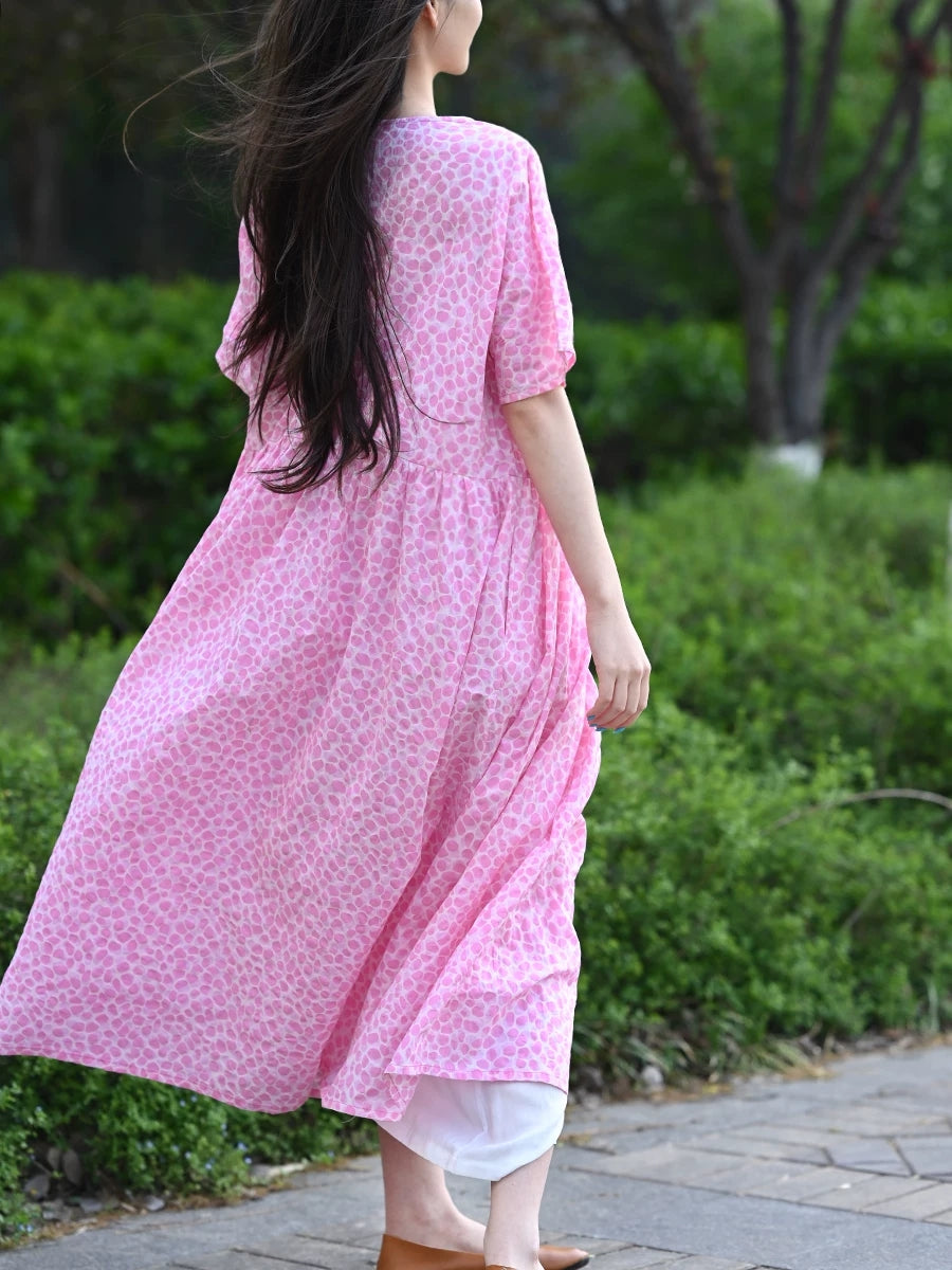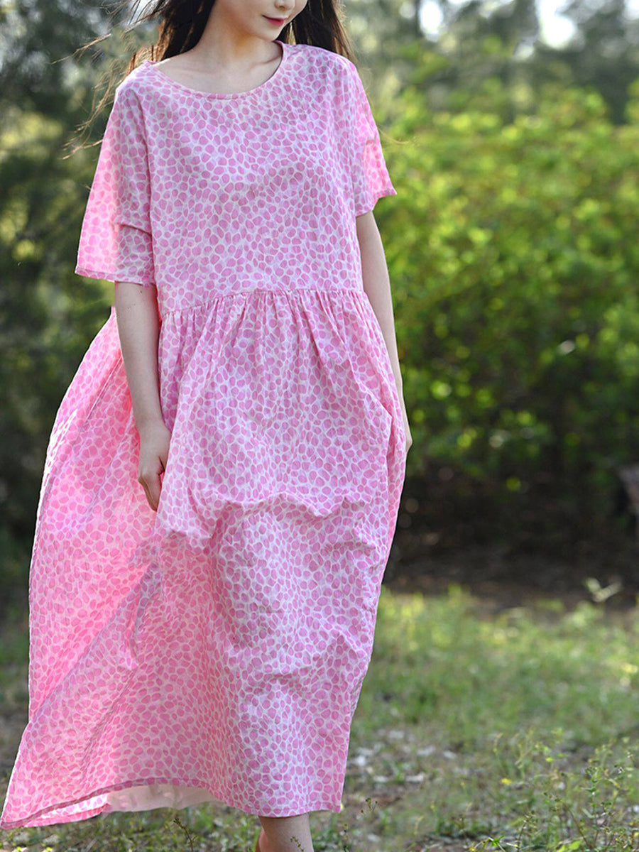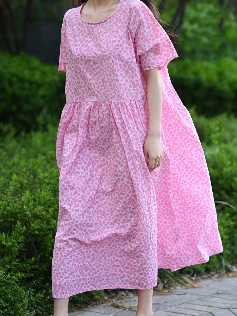 Ženska ljetna umjetnička točkasta haljina s O-izrezom od 100% pamuka