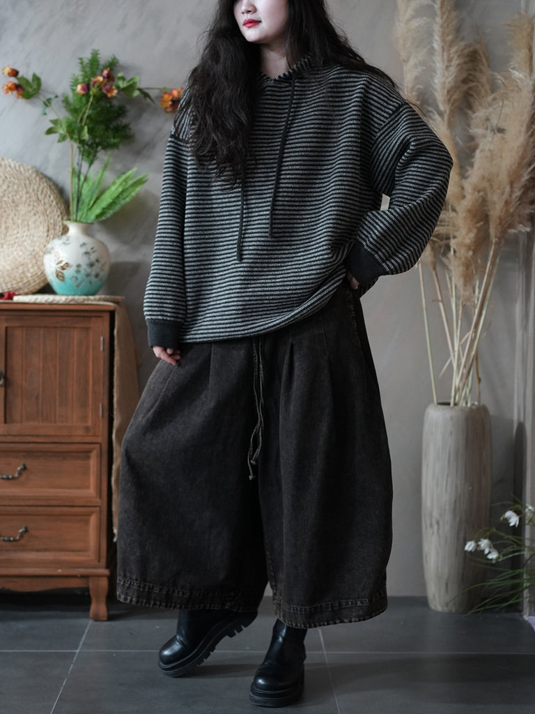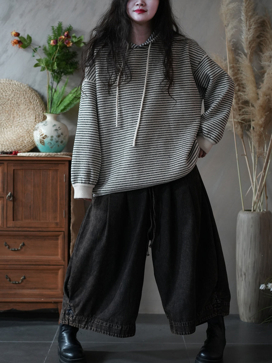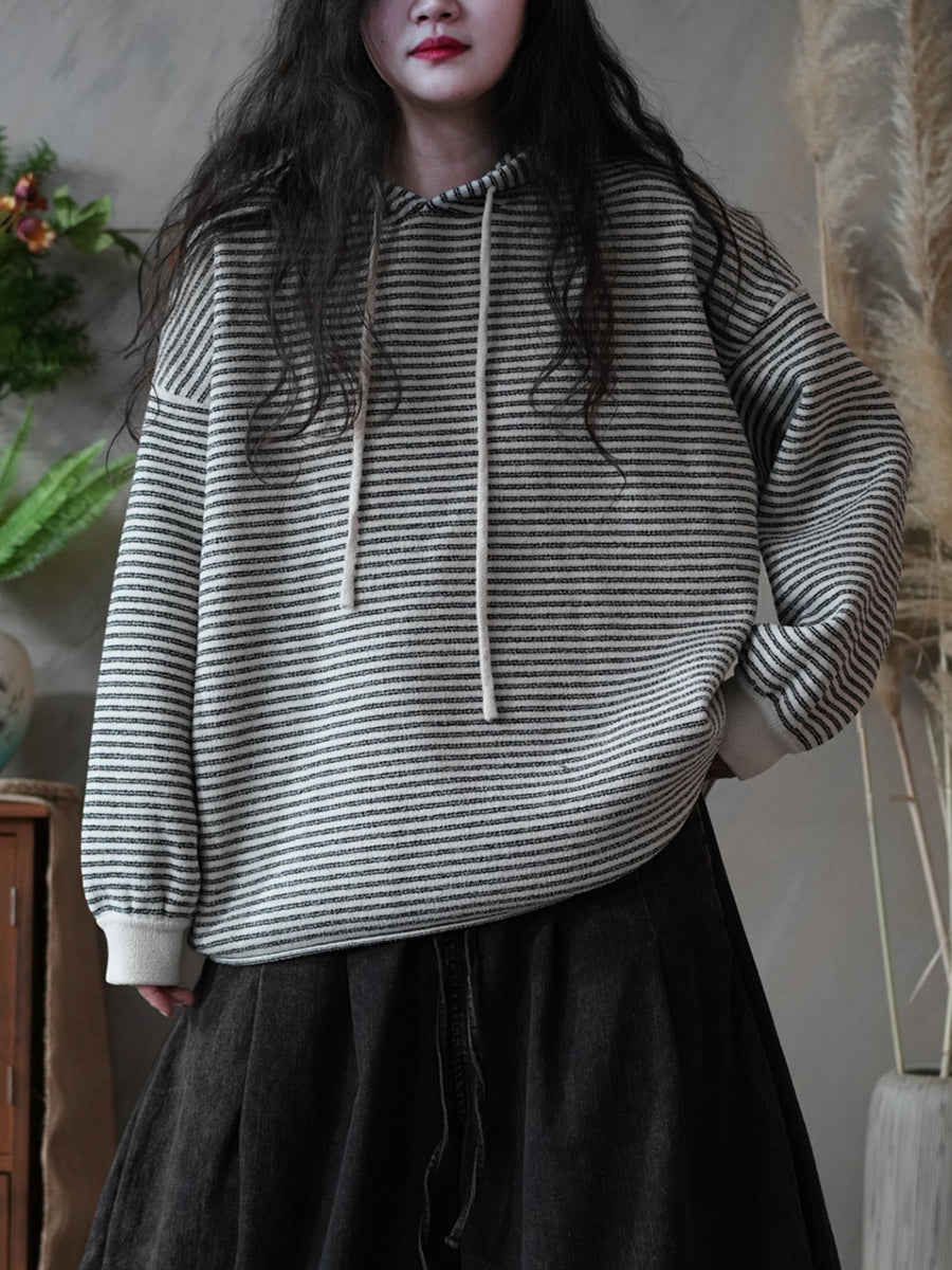 Ženska zimska ležerna prugasta majica s kapuljačom