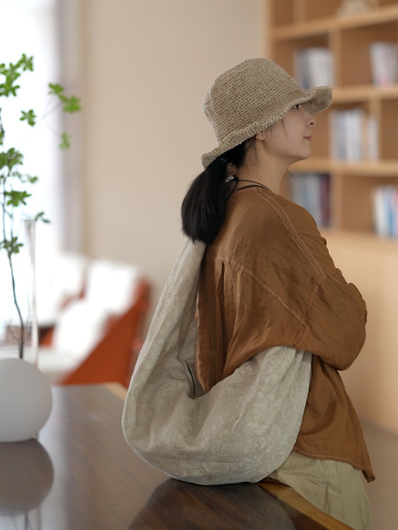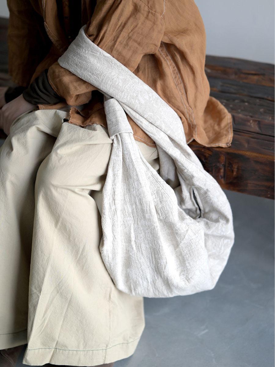 03022 Vintage pamučno-lanena torba za rame s vezom