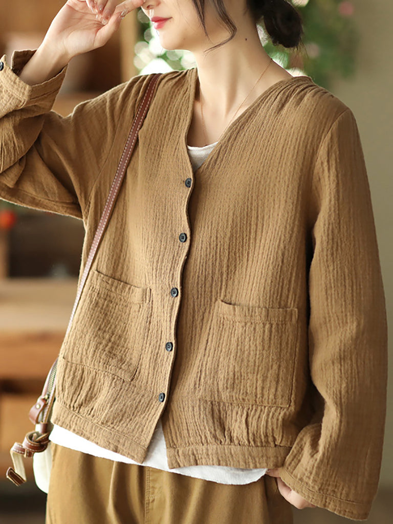 Ženska jednobojna ležerna široka košulja s dugmadima