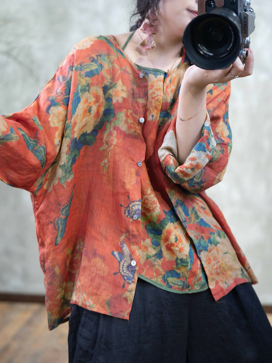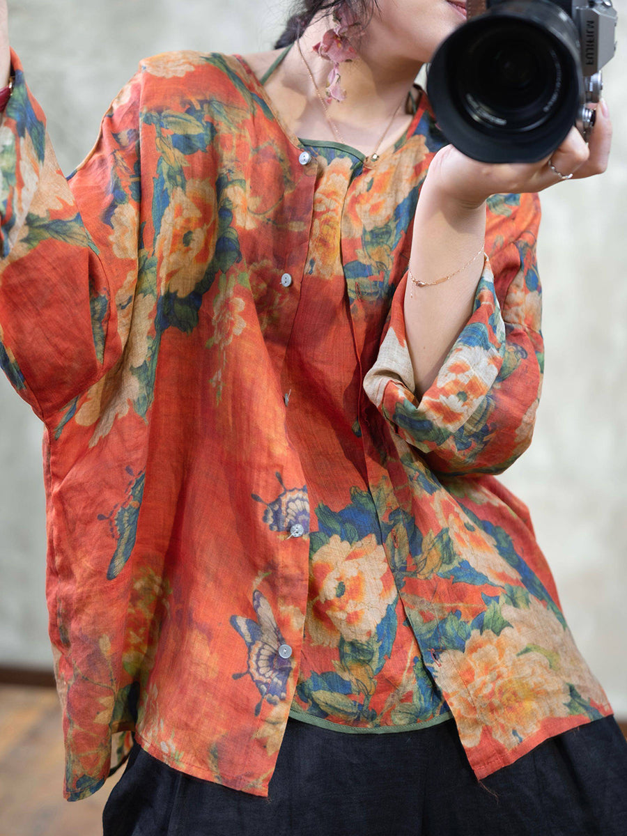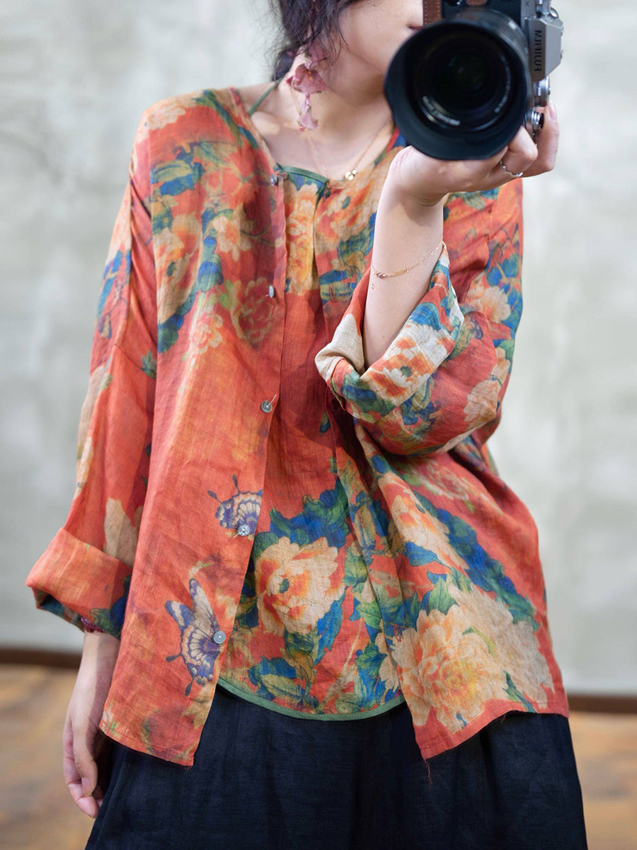 Ženska ljetna vintage cvjetna bluza s O-izrezom