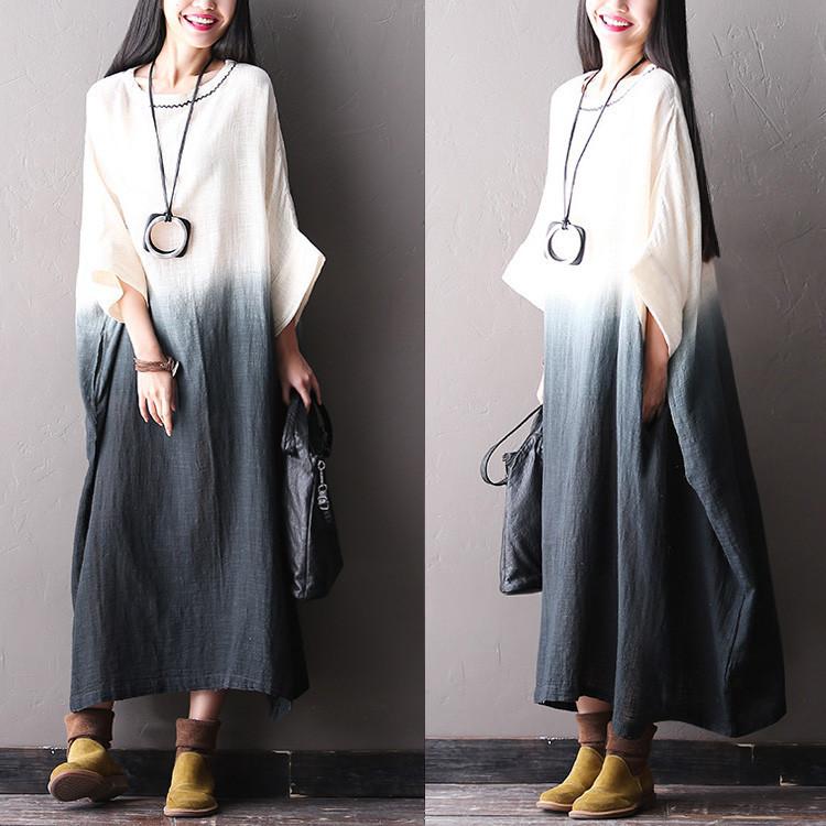 This women’s bat-wing gradient loose fit long dress with embroidery maxi dress robes