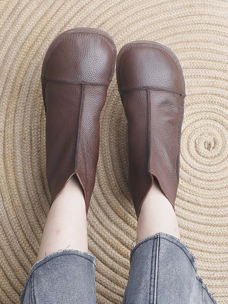Női őszi alkalmi bőr csizma, alacsony sarkú, összeillesztett