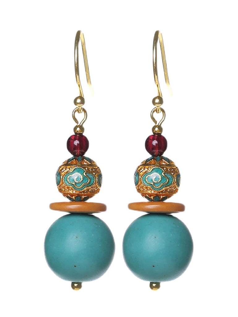 Női türkiz Cloisonne S925 ezüstözött Glod fülbevaló