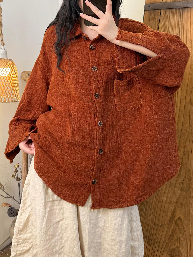 Női őszi retró tiszta színű, lehajtható galléros pamut ing