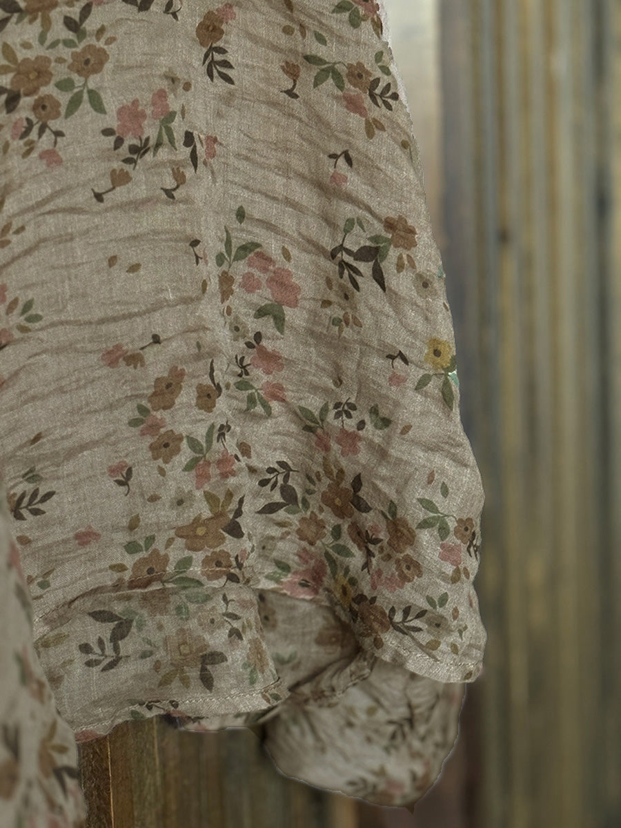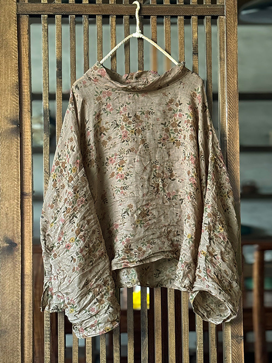 Ez a Ramie blúz stílusos garbógallérral, raglán stílusú teljes ujjal és retro ihletésű őszi virágmintával rendelkezik. Tökéletes viselet a tavaszi és őszi szezonban. Kiváló minőségű Ramie anyagból készült.