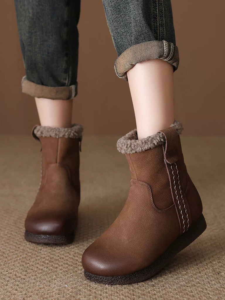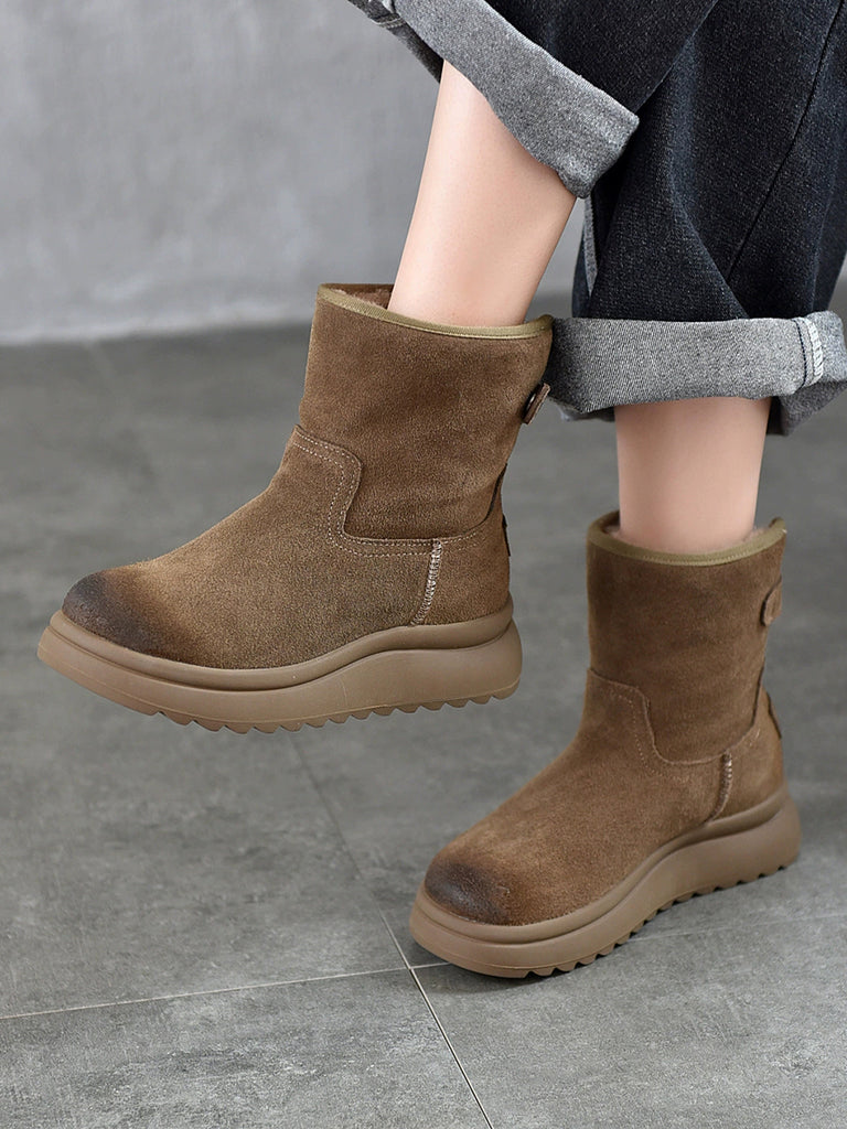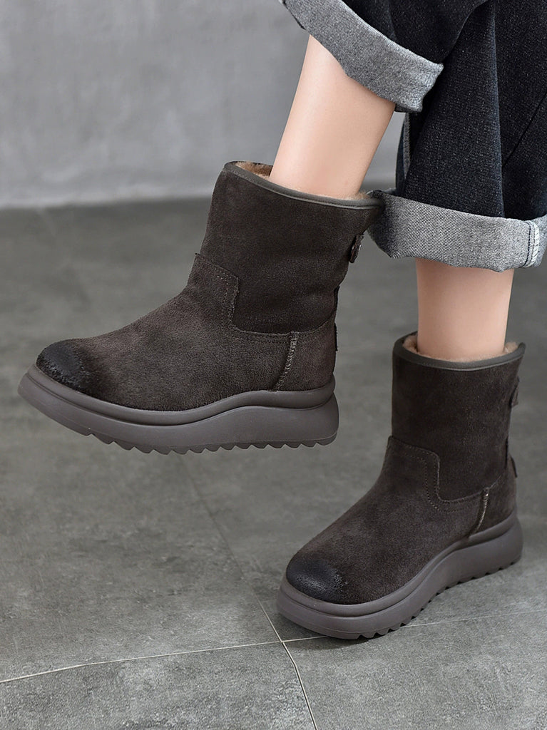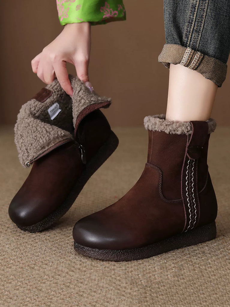 Női téli hétköznapi valódi bőr polár bélésű meleg csizma