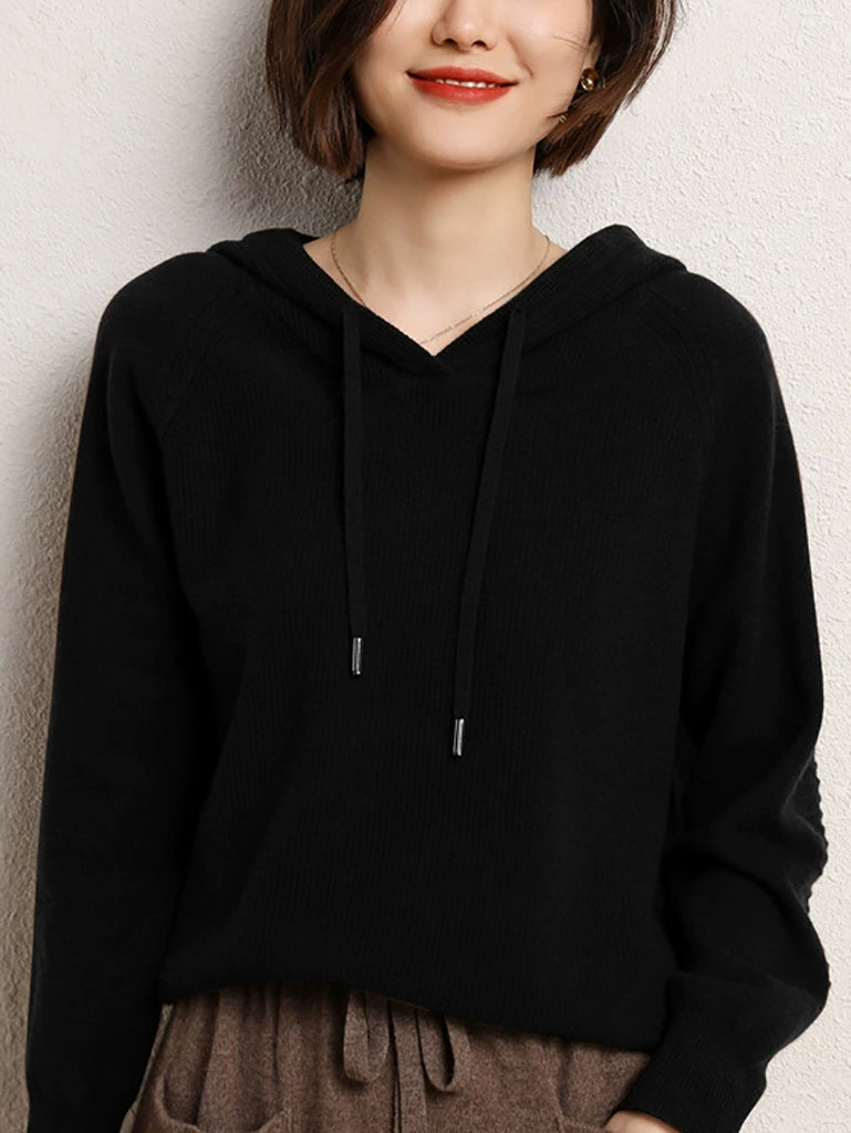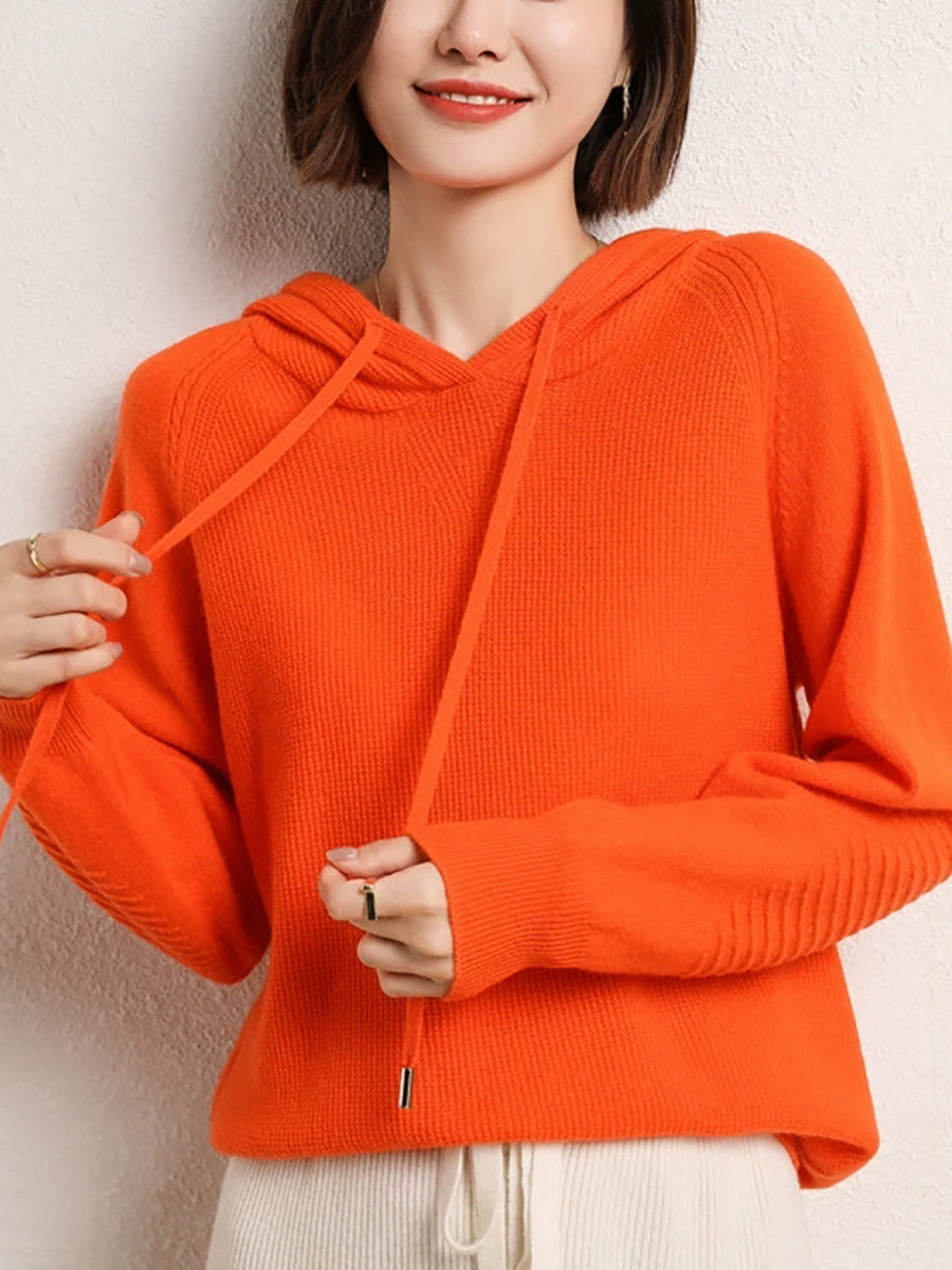 Női alkalmi őszi tiszta színű kapucnis kötött pulóver