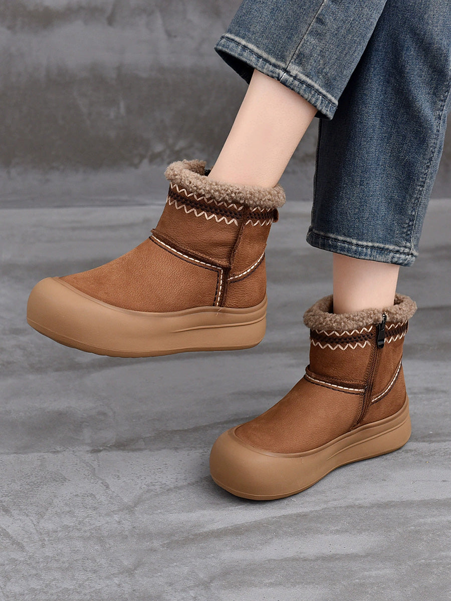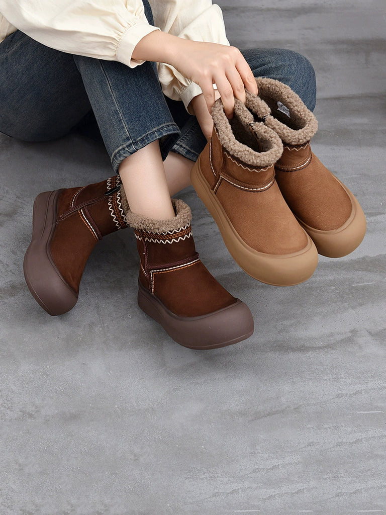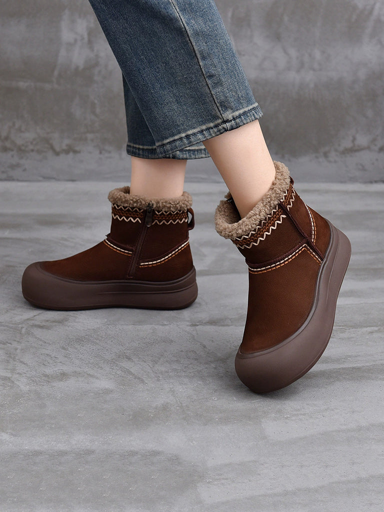 Női téli etnikai valódi bőr polár bélésű hótaposó