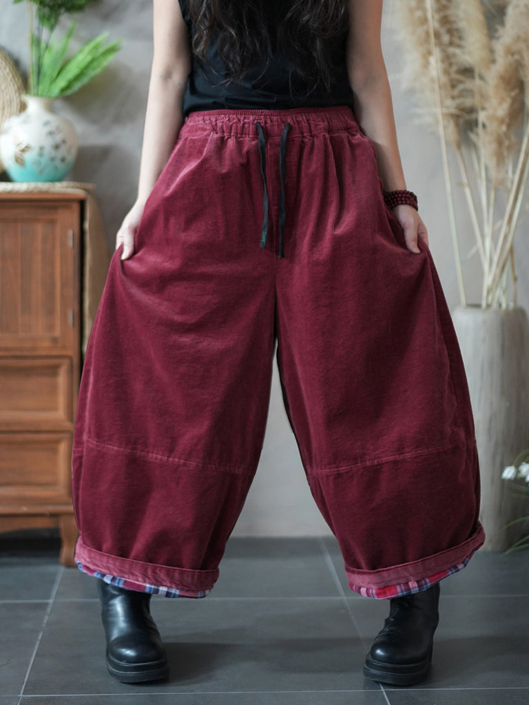 Női téli retro tiszta színű kordbársony széles szárú nadrág