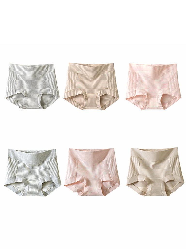 6 darabos női alkalmi csíkos, magas derekú pamut alsónemű