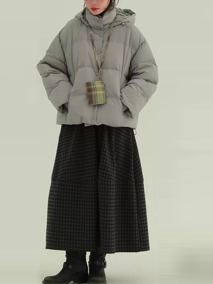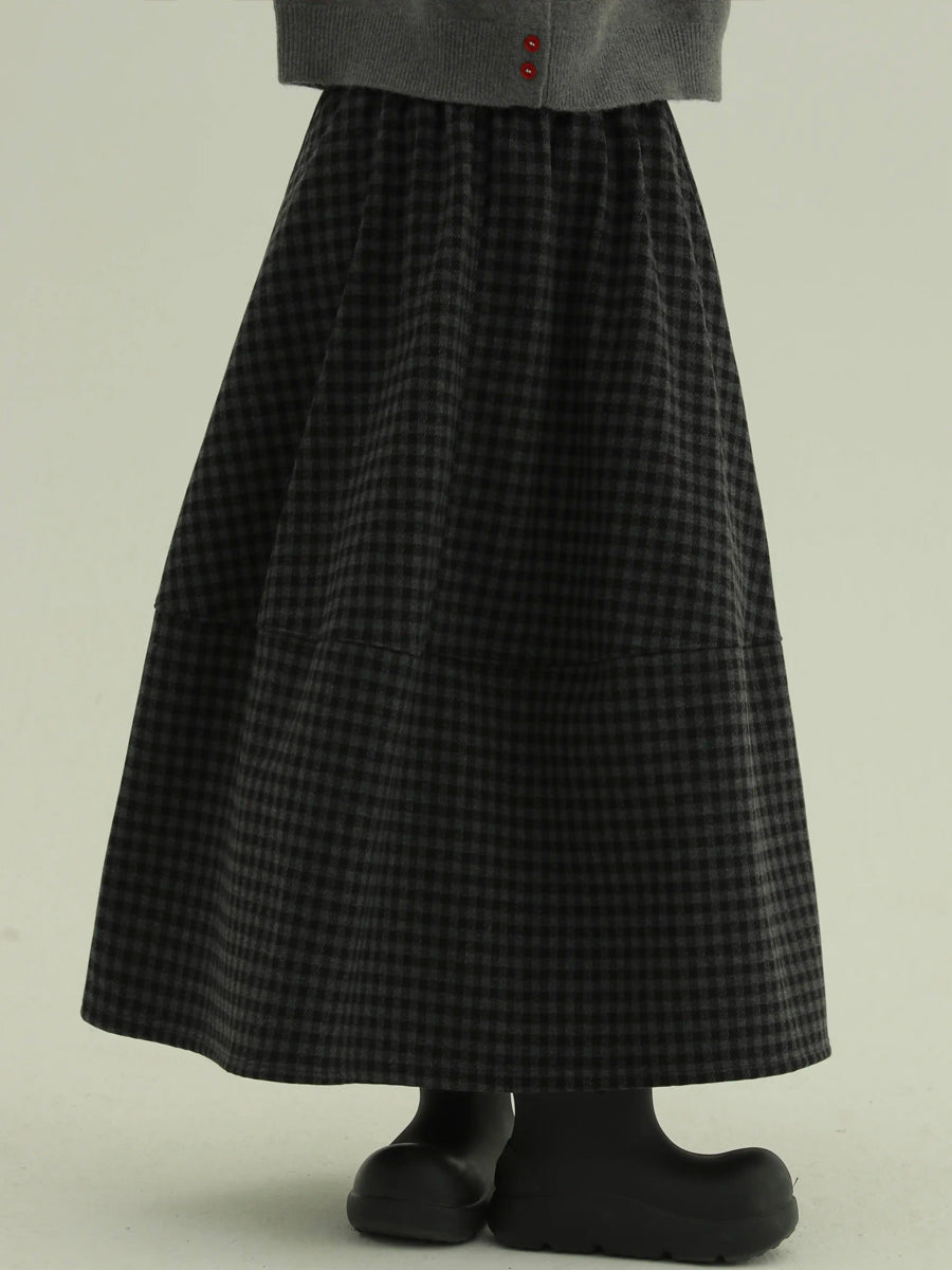 Női téli polár bélésű kockás A-alakú szoknya