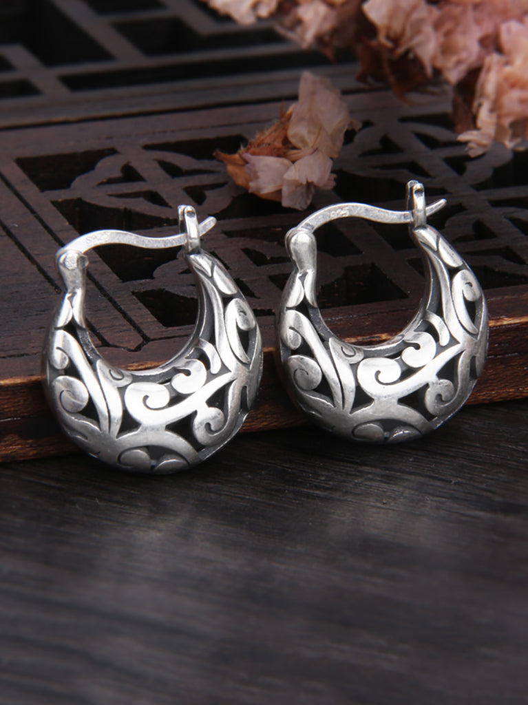 Vintage S925 ezüst kivájt virágos fülbevaló