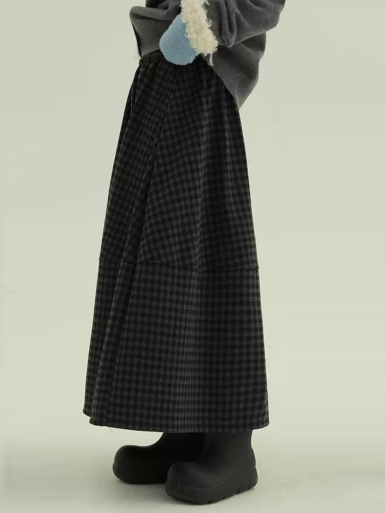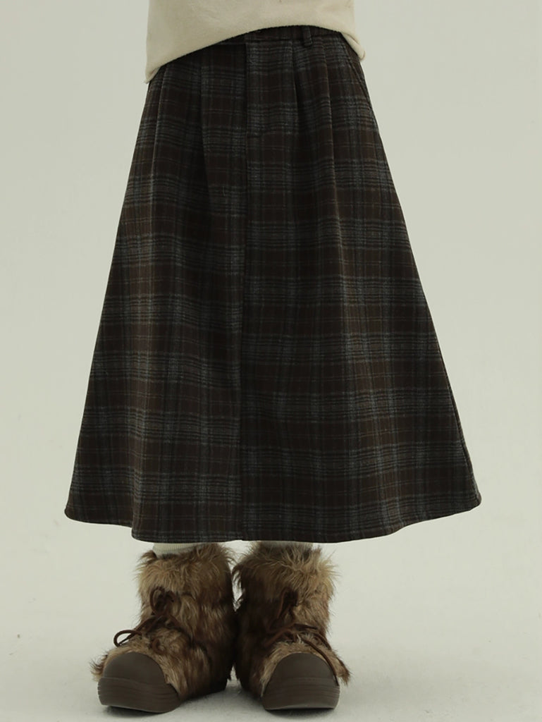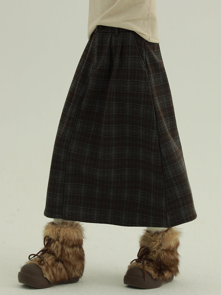 Női téli retró kockás, polár bélésű, széles szárú nadrág