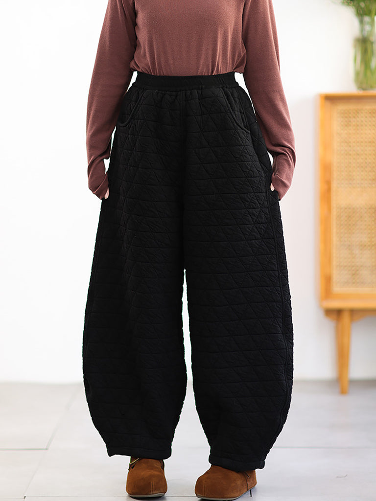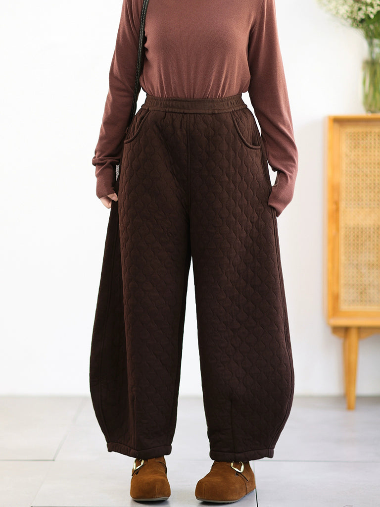 Női téli retro tiszta színű, bélelt, széles szárú nadrág