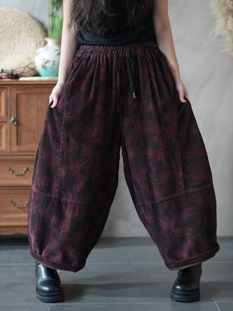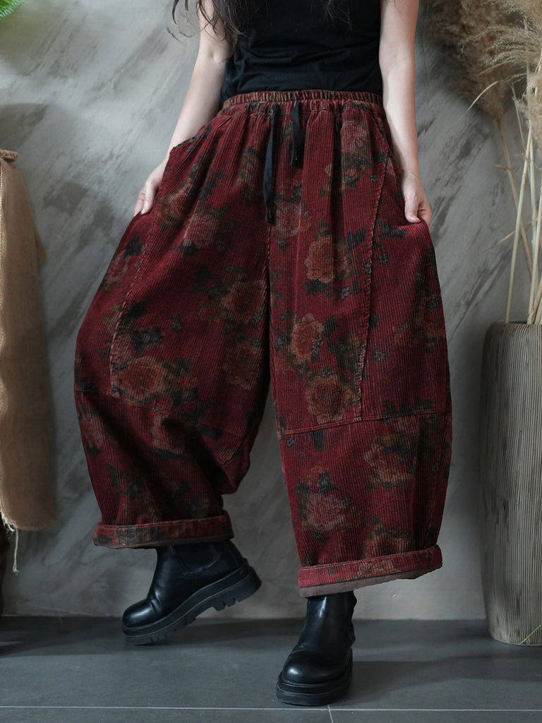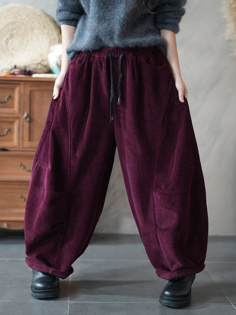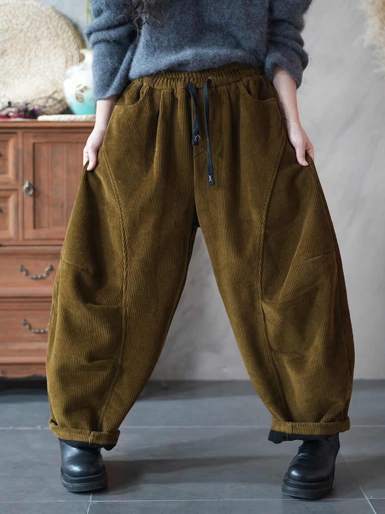 Női téli retró kordbársony bélelt széles szárú nadrág