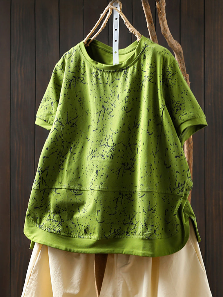 Női őszi művészi virágmintás V-nyakú pamut blúz