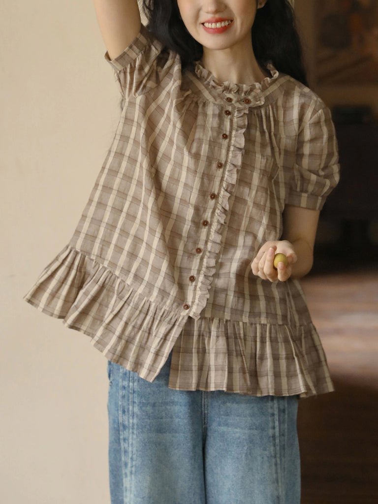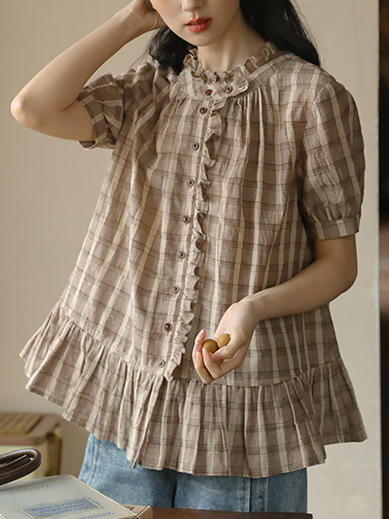 Női őszi retró tiszta színű lenvászon állógalléros ing