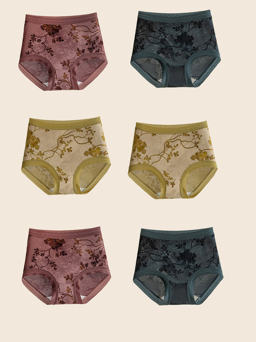 6 darabos női virágmintás, magas derekú alsónemű