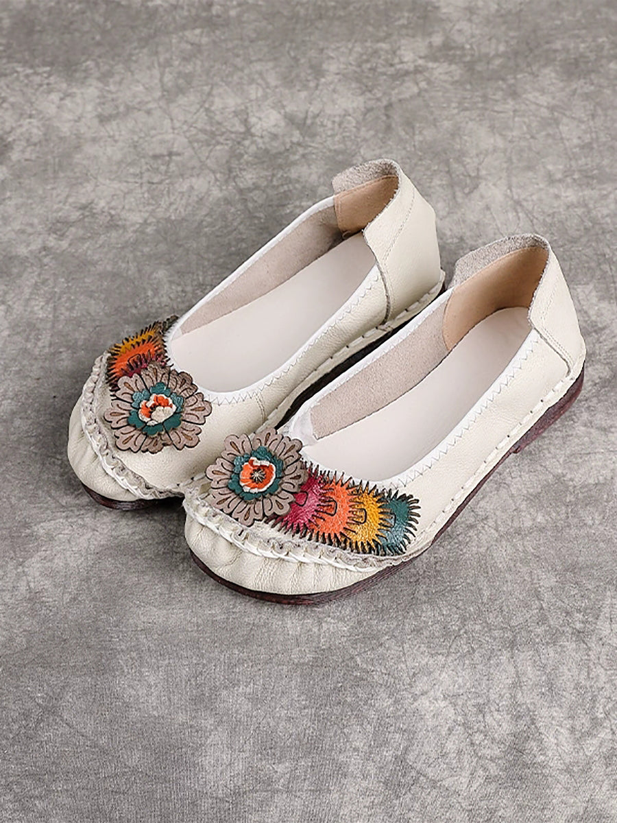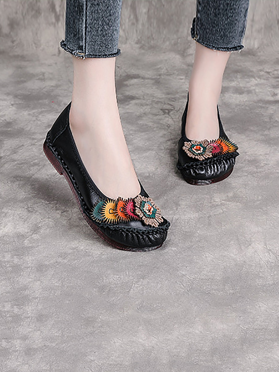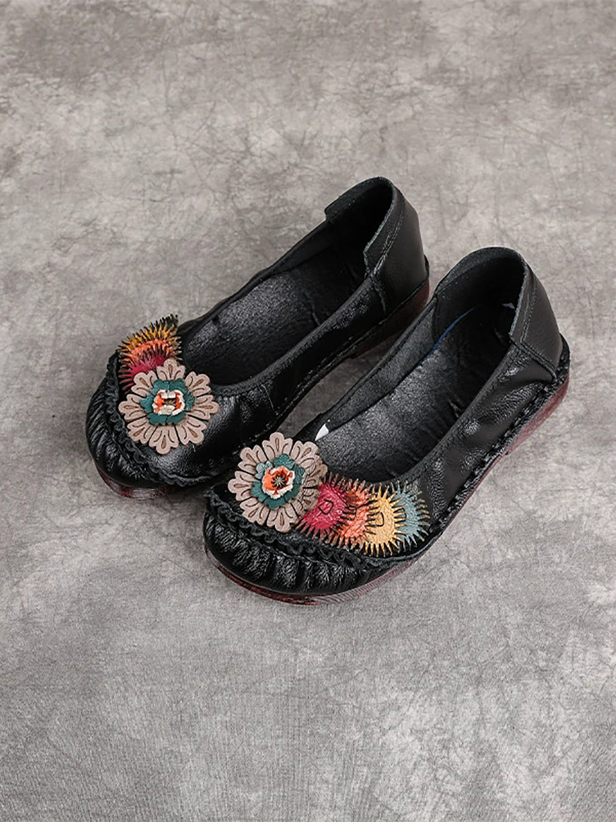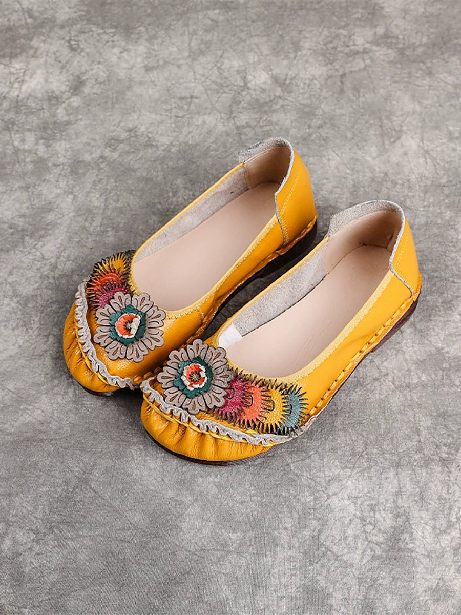 Női etnikai valódi bőr virágos alacsony sarkú cipő