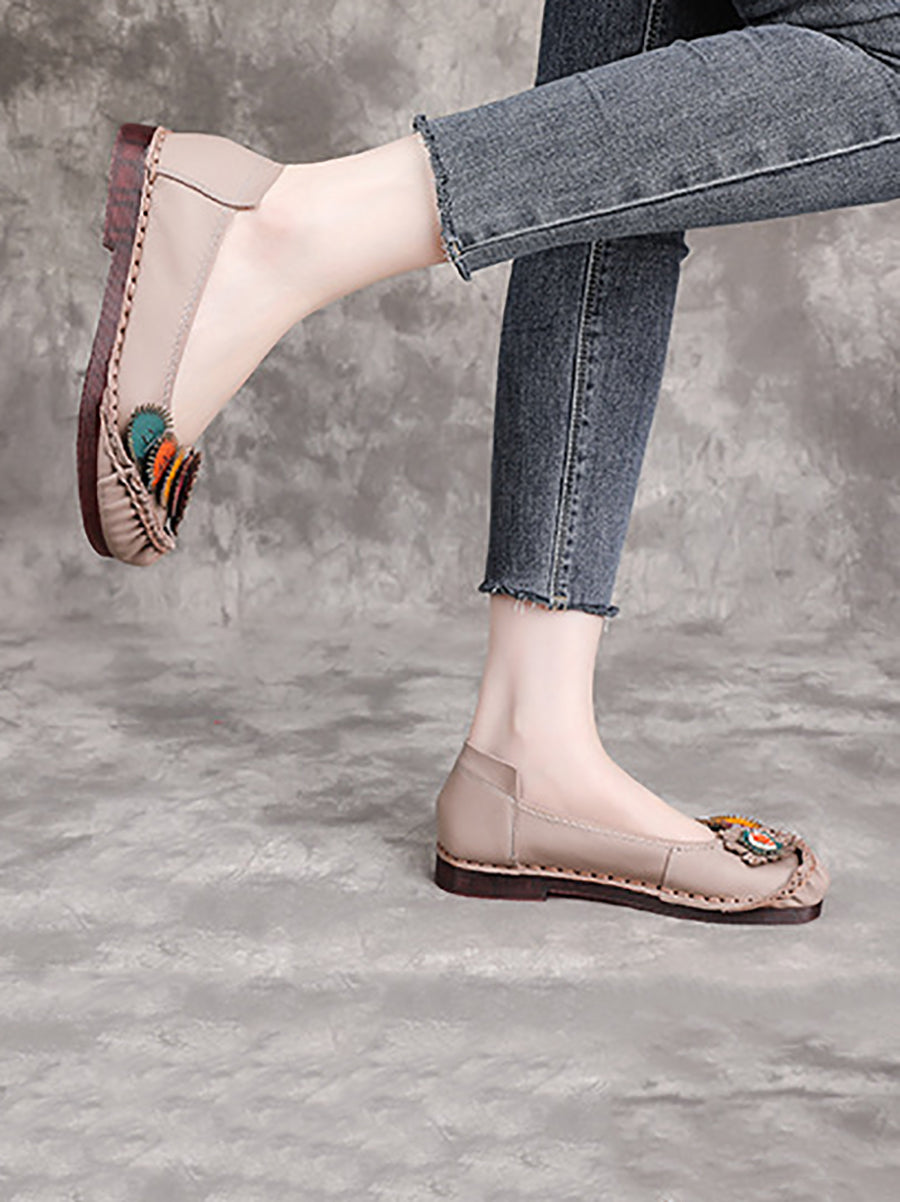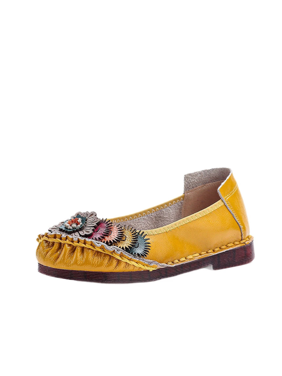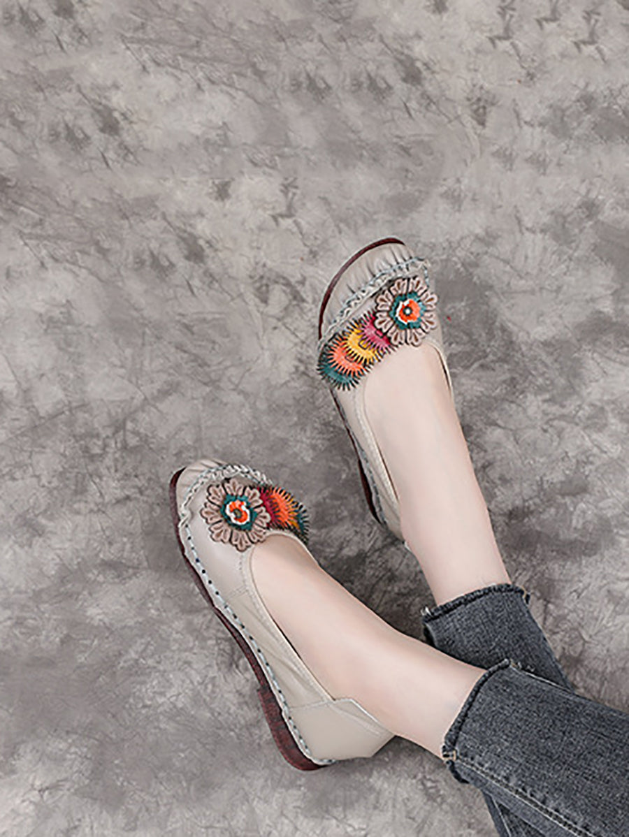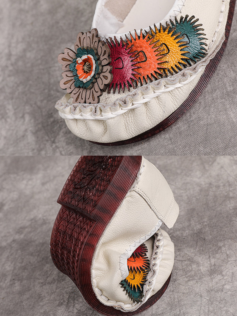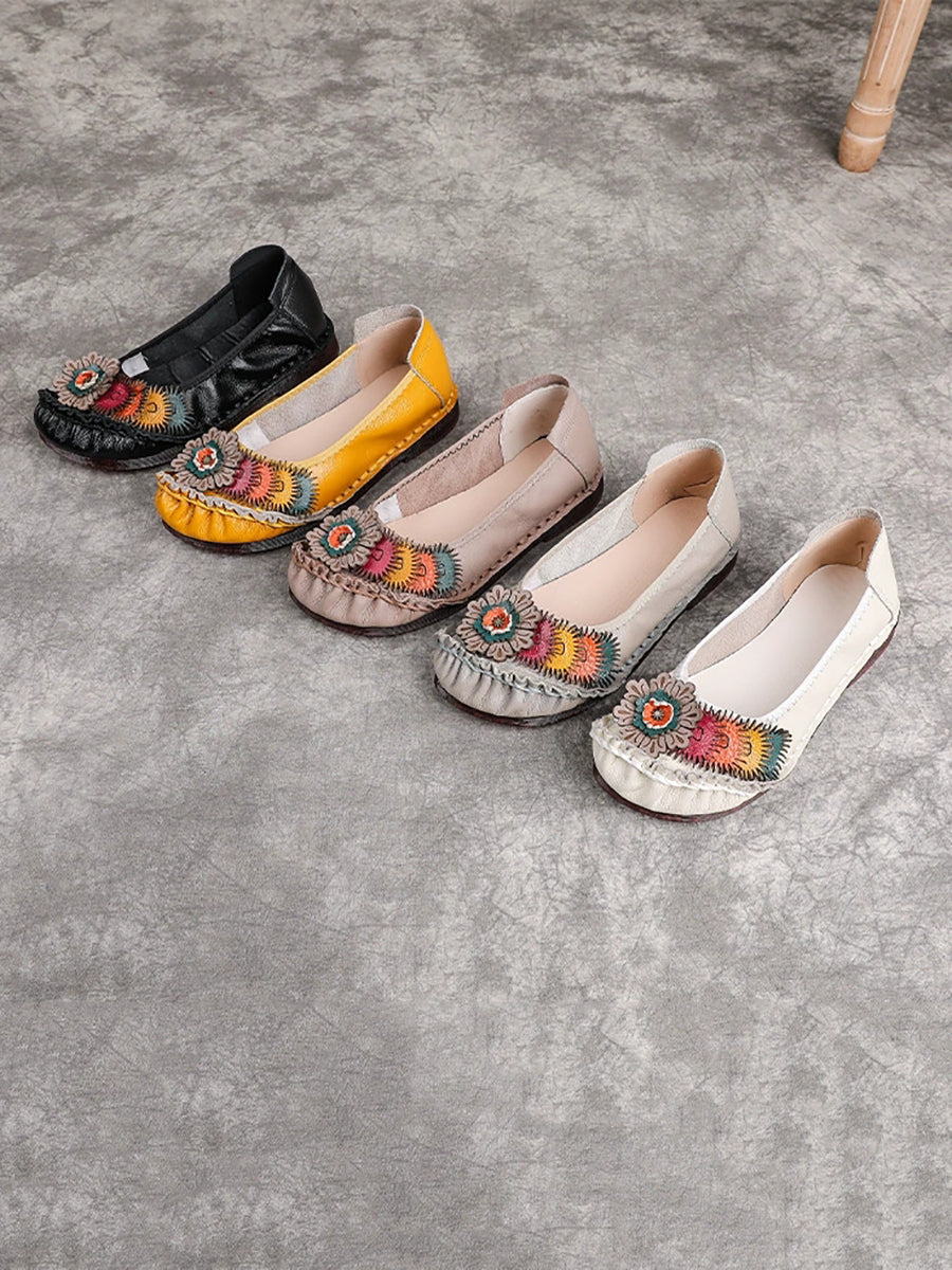 Női etnikai valódi bőr virágos alacsony sarkú cipő