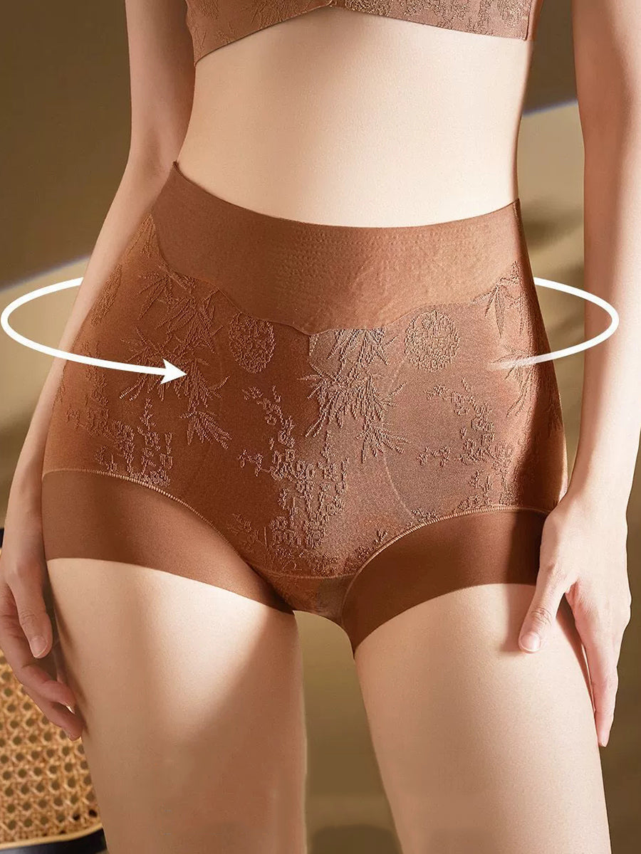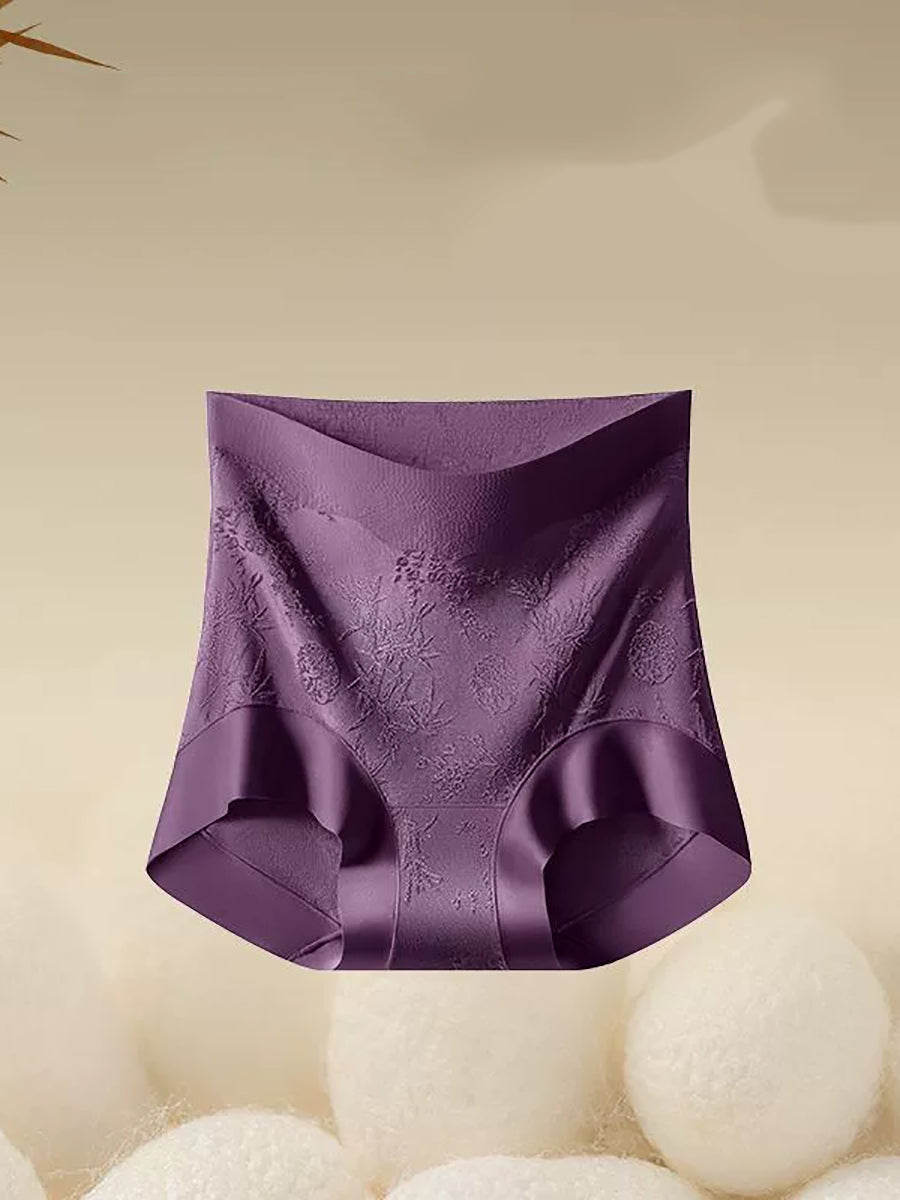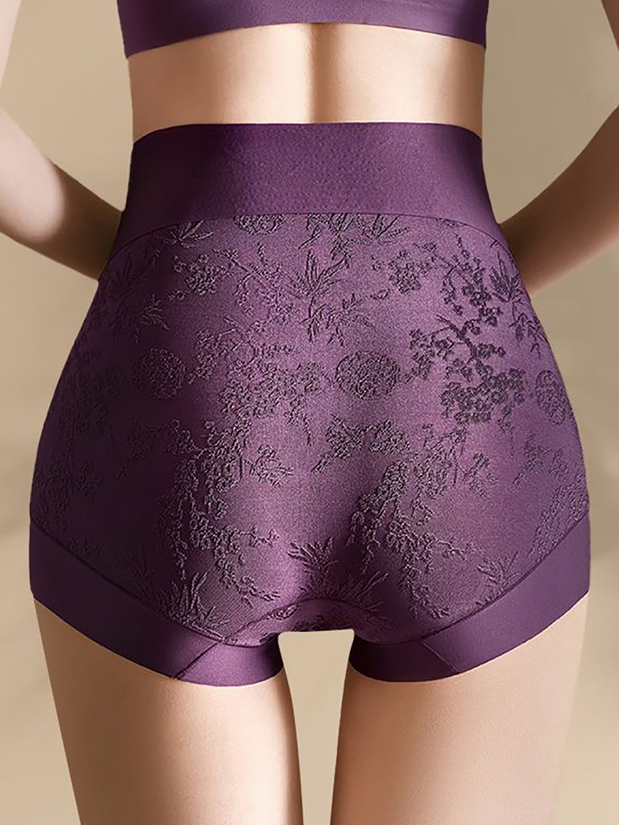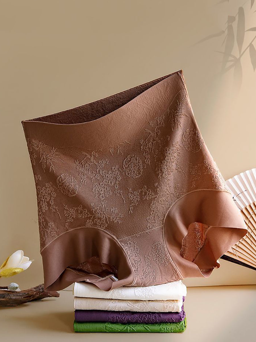 4 darabos női művészi virágmintás jacquard magas derekú alsónemű