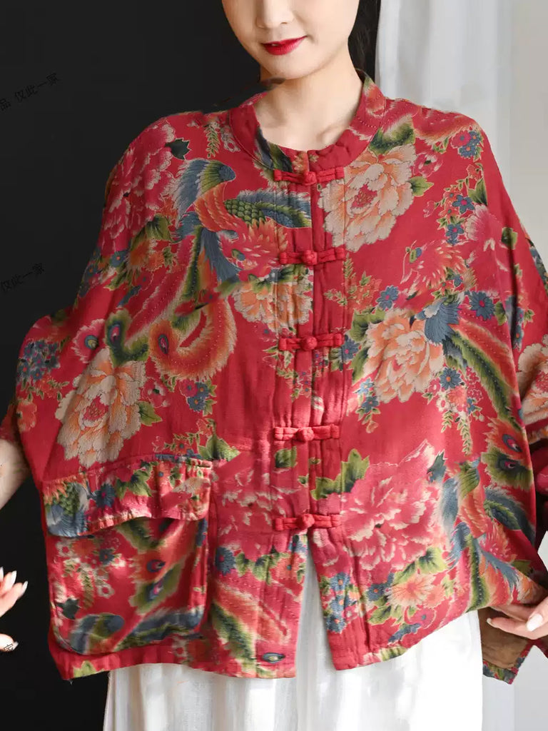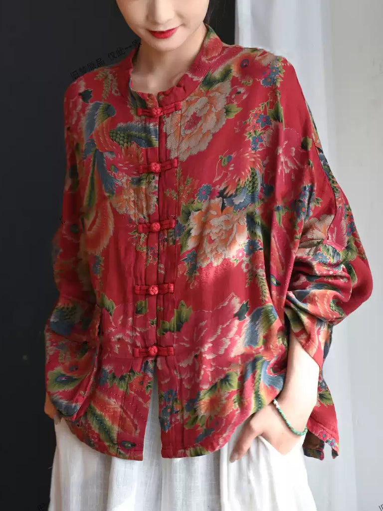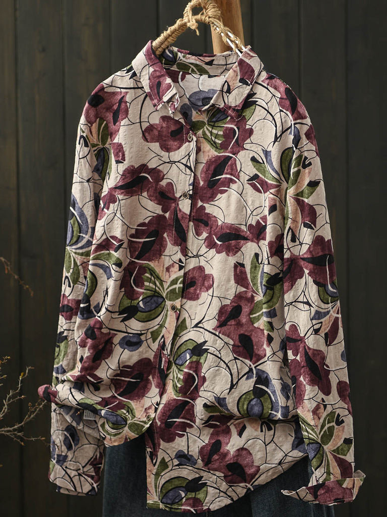 Tartsa lépést a tavaszi és nyári legújabb divattrendekkel a Női Artsy nyári virágmintás Ramie blúzunkkal. Ez a kiváló minőségű rami anyagból készült blúz gyönyörű virágmintával és divatos lehajtható gallérral rendelkezik. A fél raglán ujjak művészi stílust adnak, így ez a blúz a szezon kötelező darabja.
