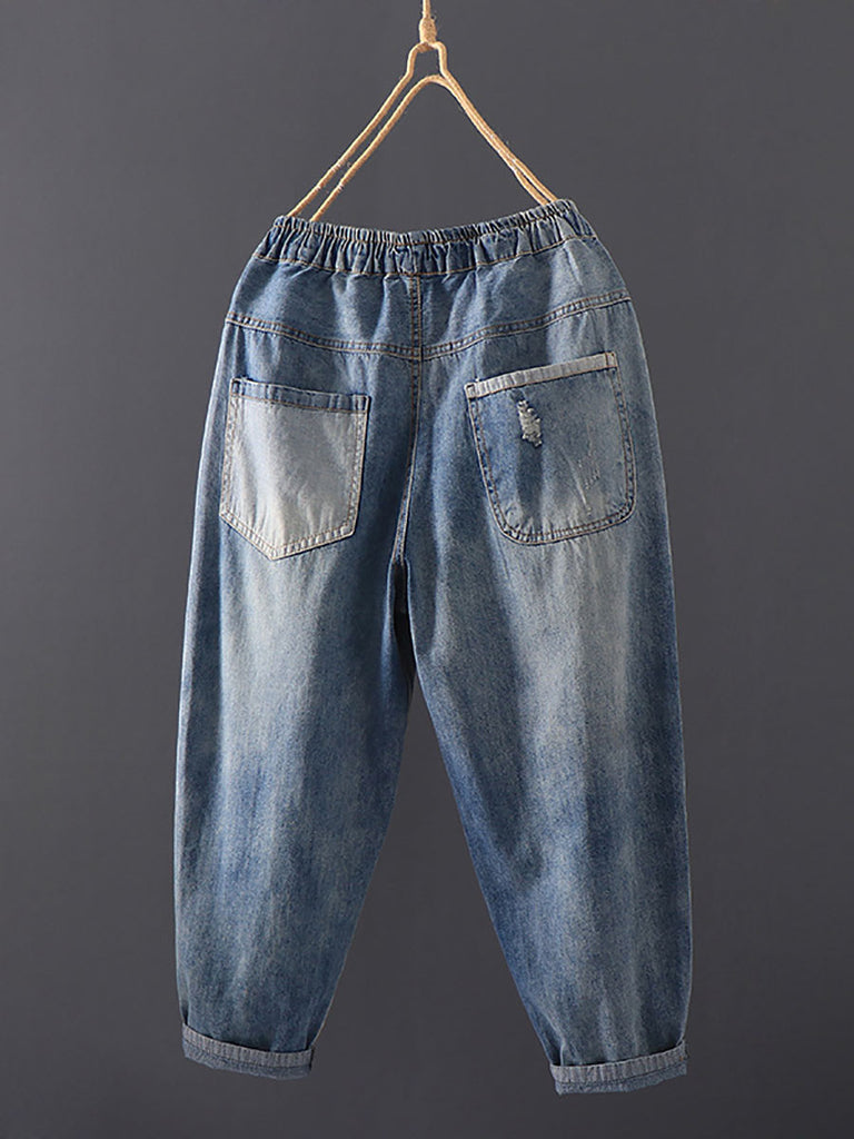 Női nyári vintage varrás zsebben farmer hárem nadrág