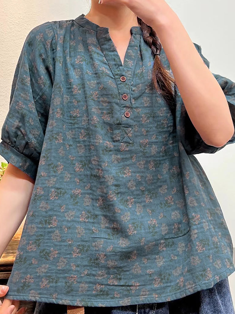 Ez a stílusos ing puha anyagból és vintage virágmintás nyomattal rendelkezik, hogy nőies jegyet vigyen a gardróbba. V-nyakú gallérral, teljes ujjakkal és gombos kiemeléssel készült, így ideális választás a tavaszi és nyári szezonra.