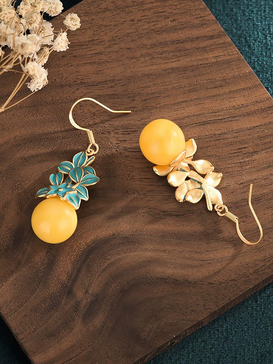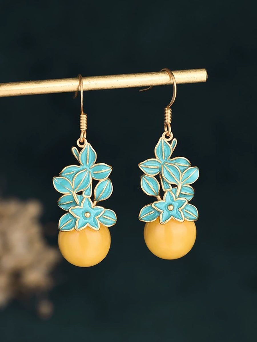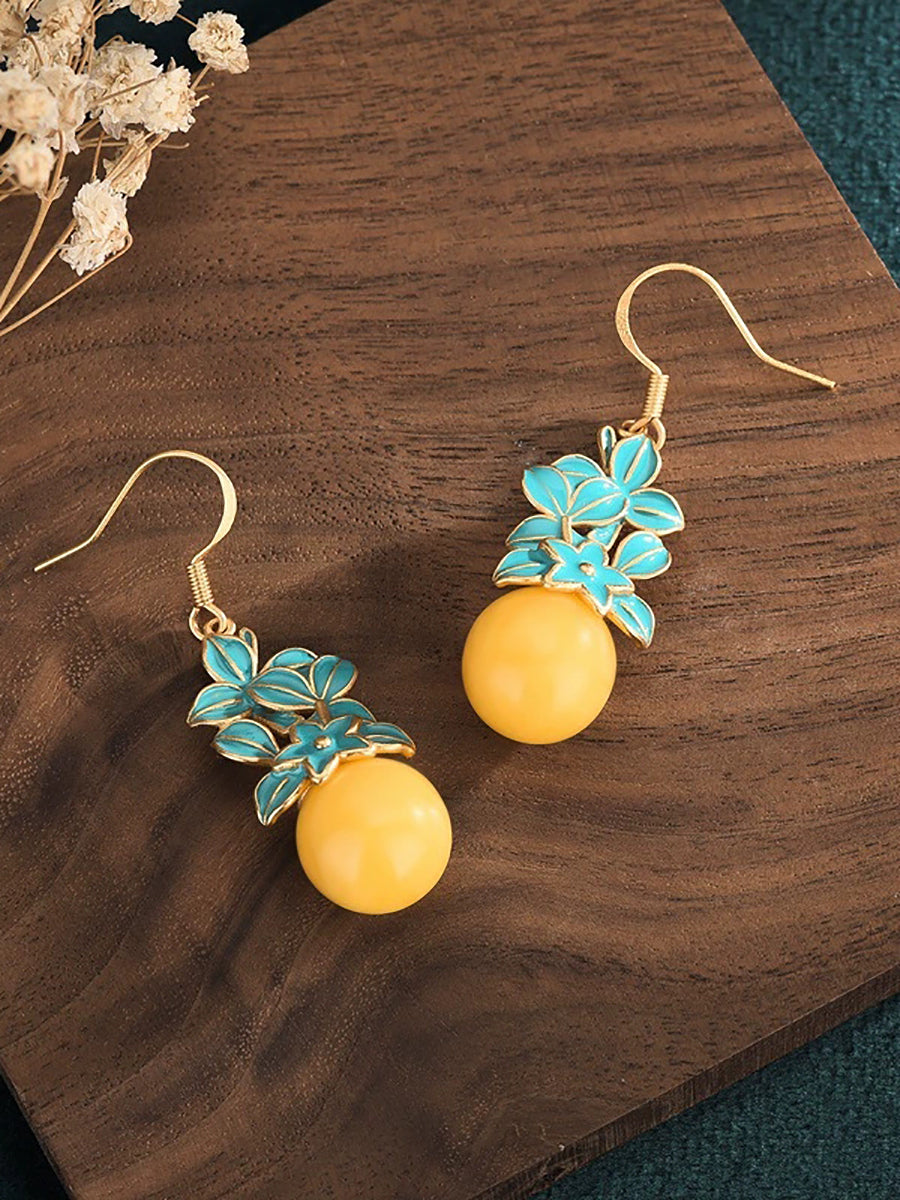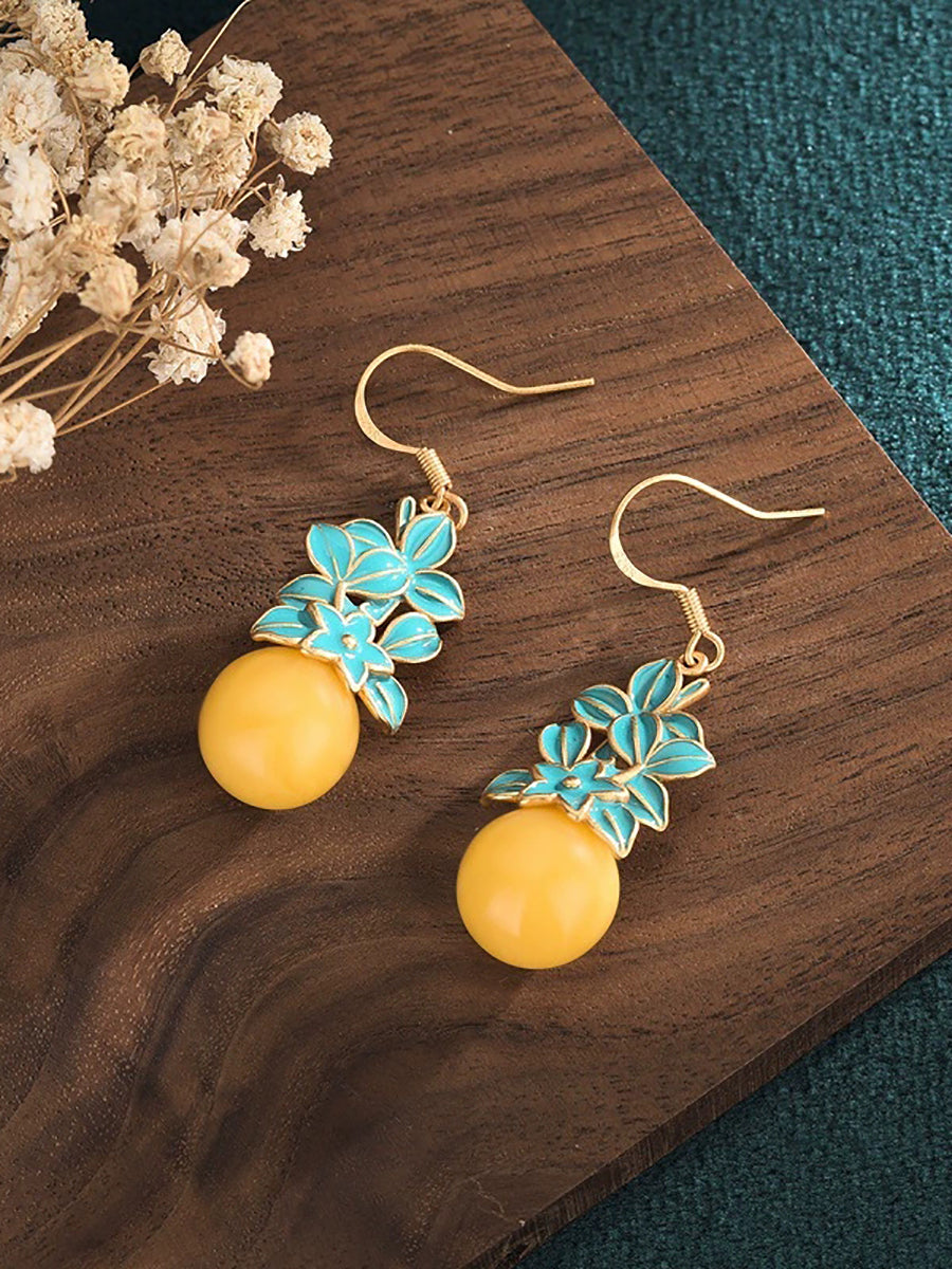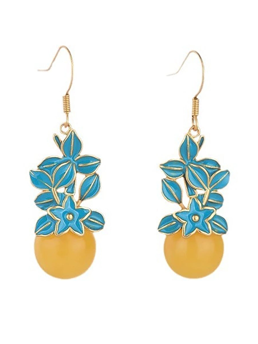 Vintage viaszgyöngyös zománcvirágos ötvözet fülbevalók