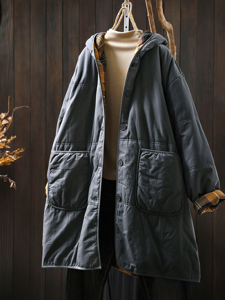 Női őszi alkalmi tiszta színű kapucnis bélelt kabát