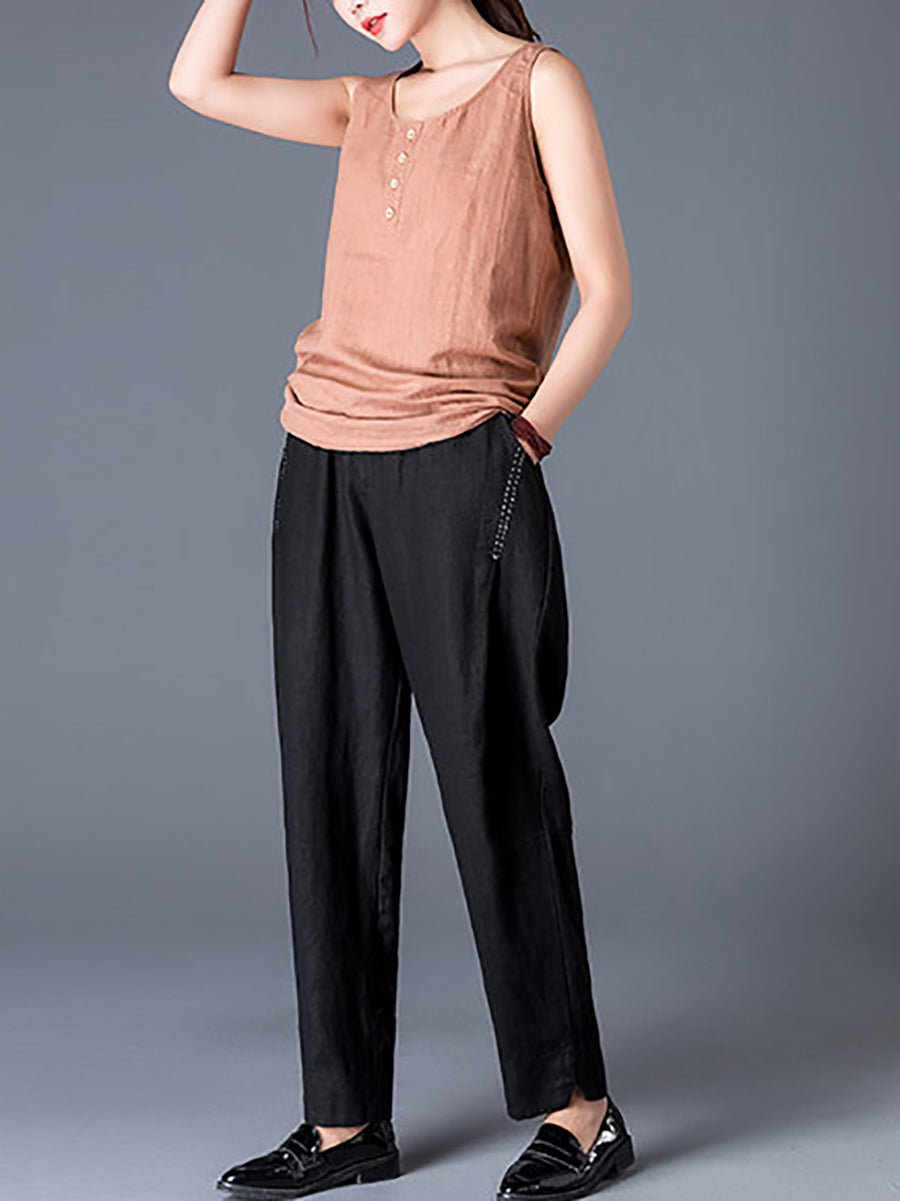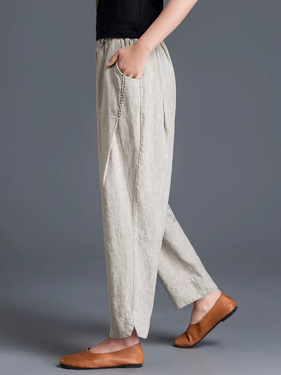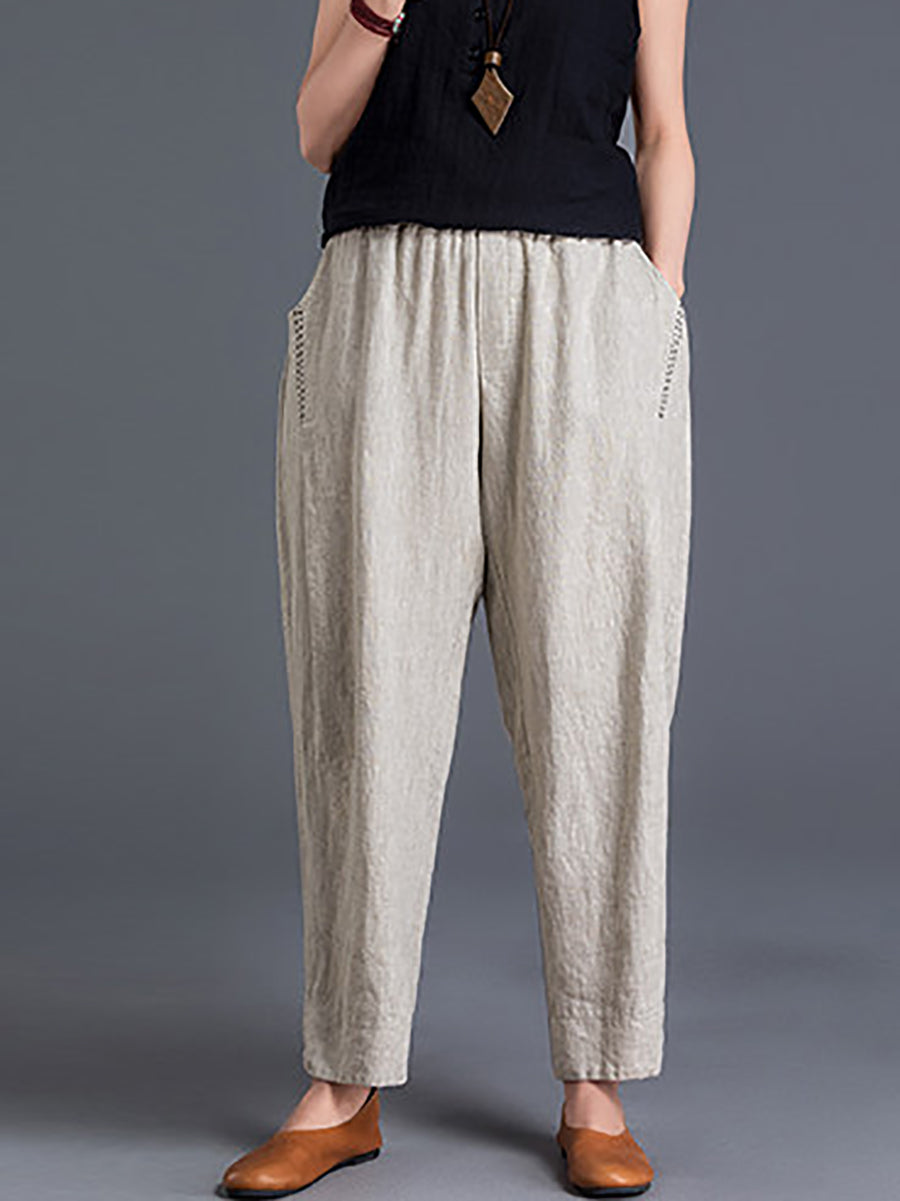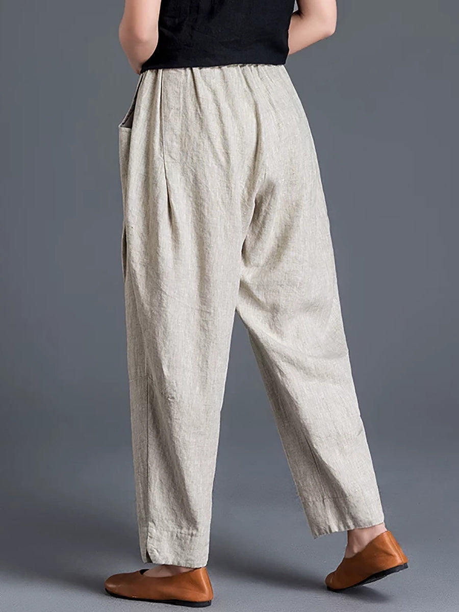 Női tavaszi tiszta színű pamut lenvászon háremnadrág