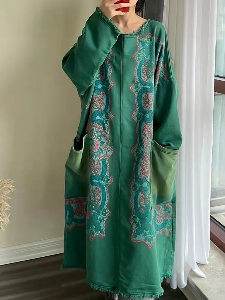 Női tavaszi retro virágos O-nyakú maxiruha