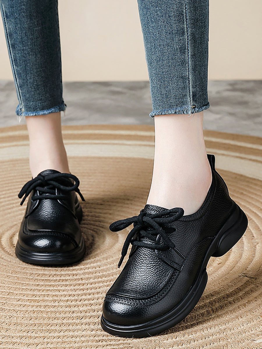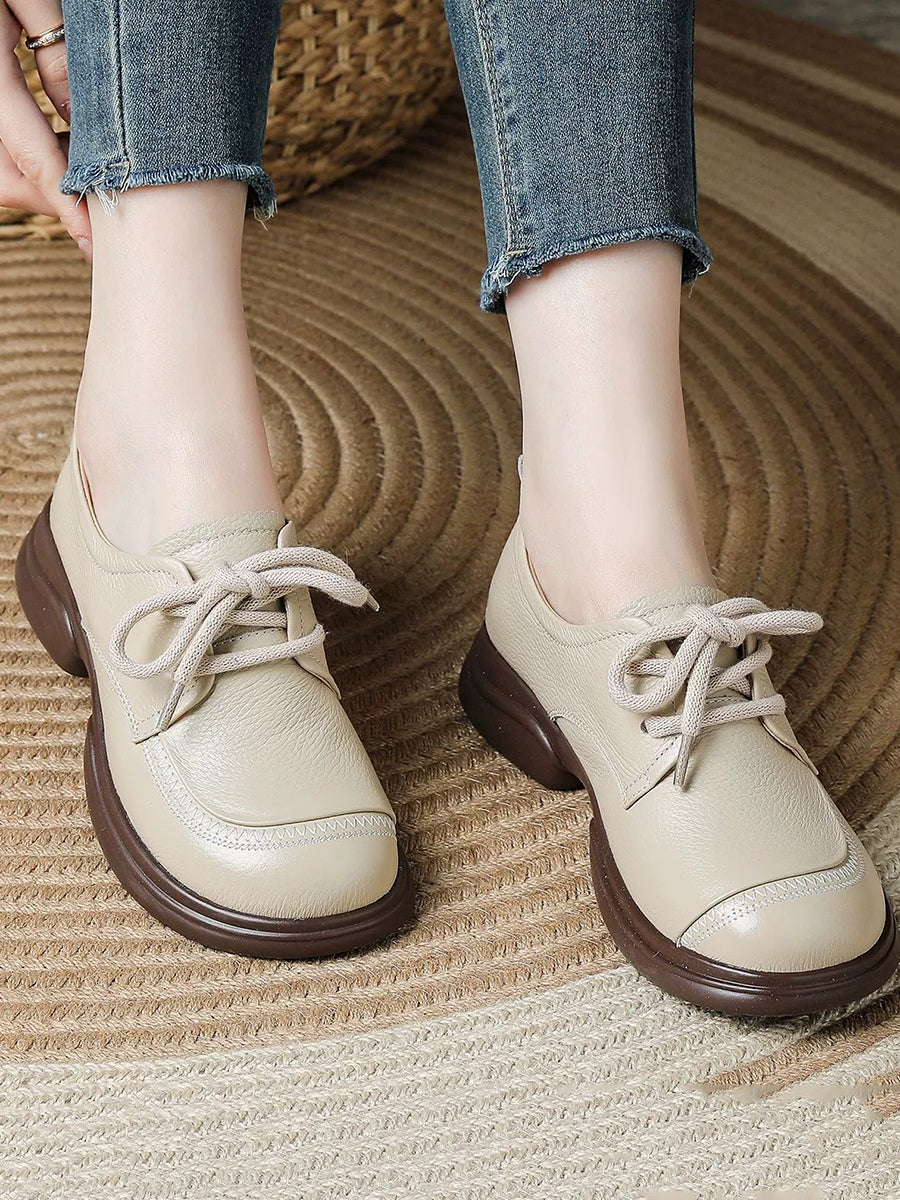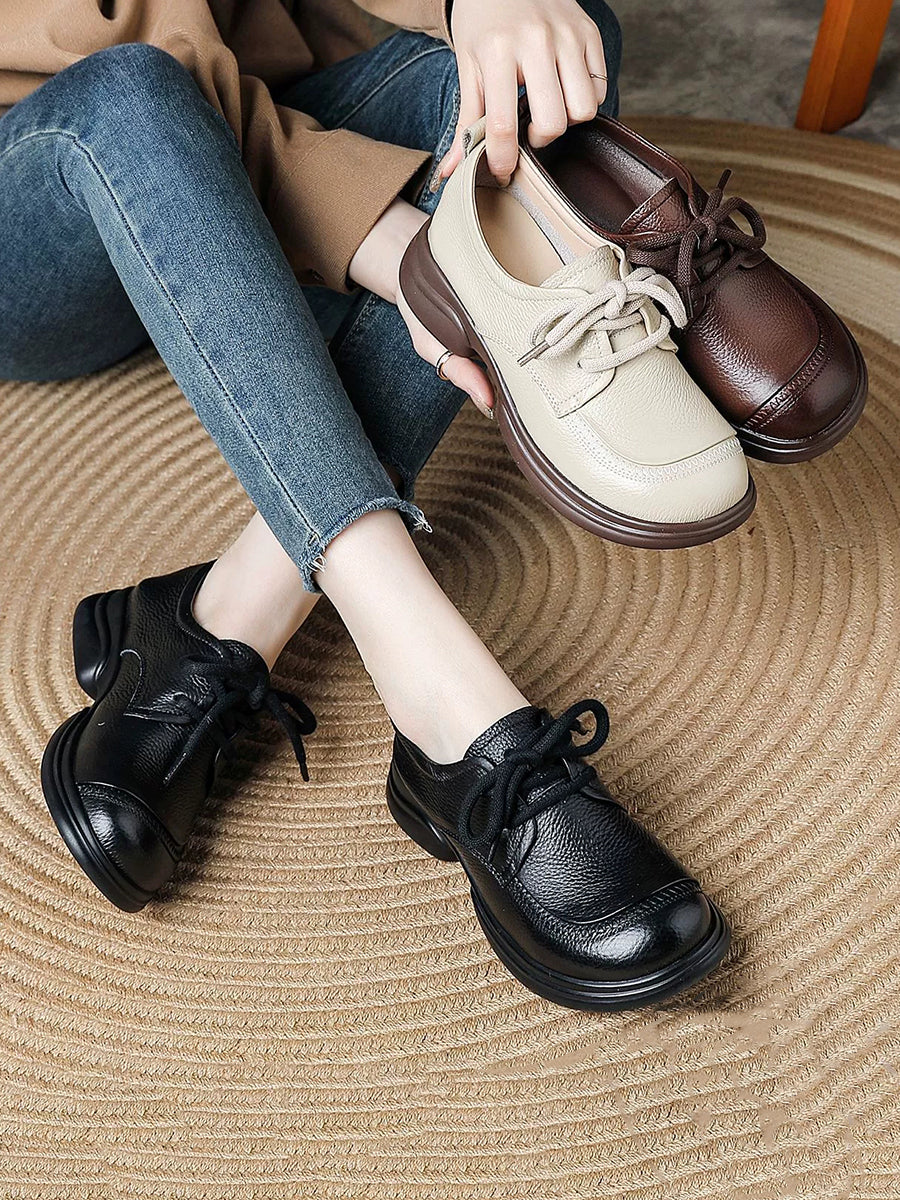 Női tavaszi retro valódi bőr alacsony sarkú cipő