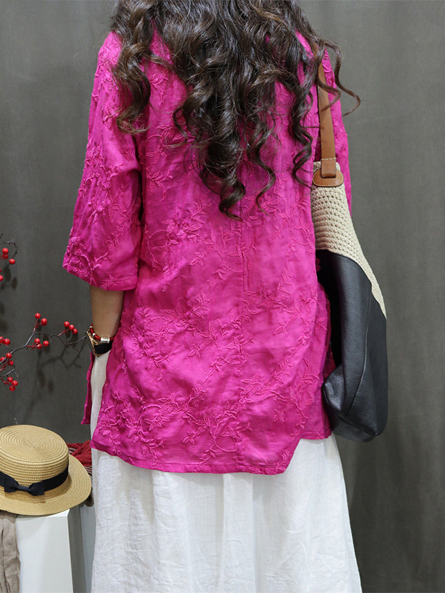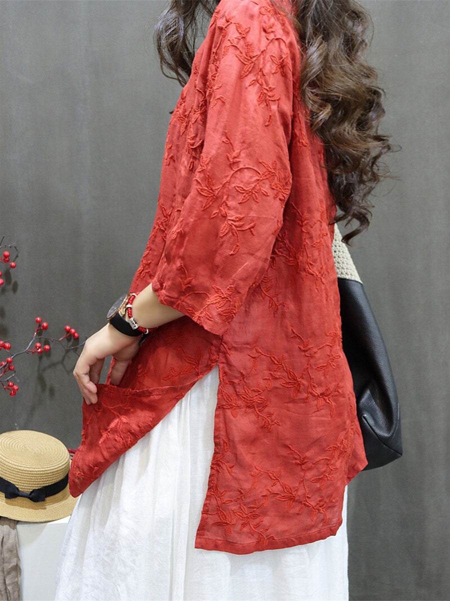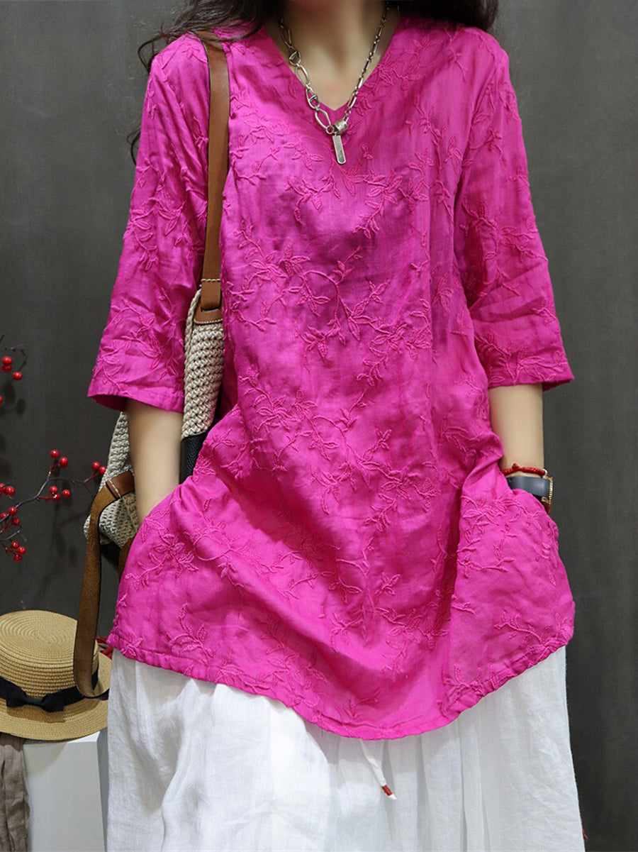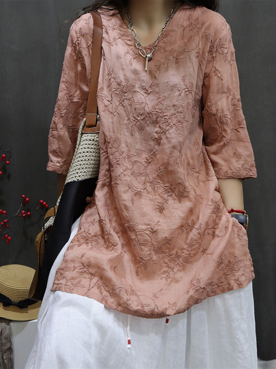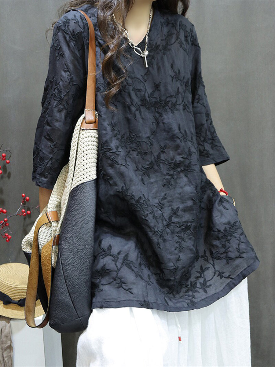 Női Nyári Művészi Hímzésű 100% Rami V-nyakú Blúz