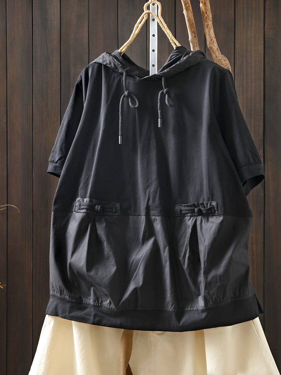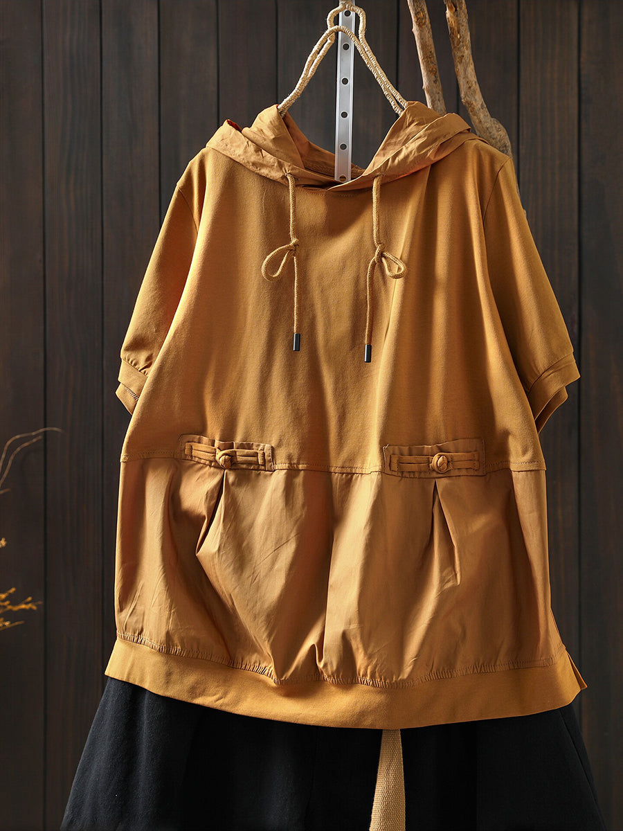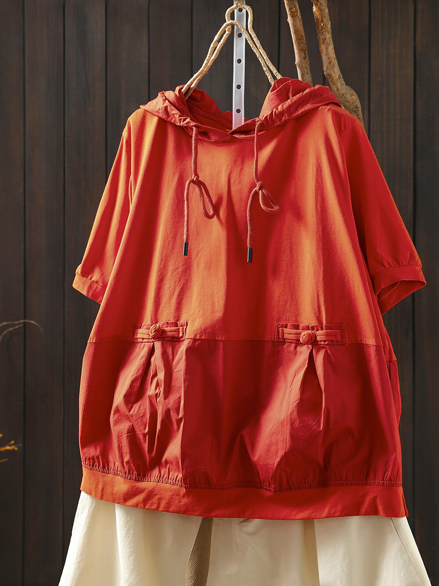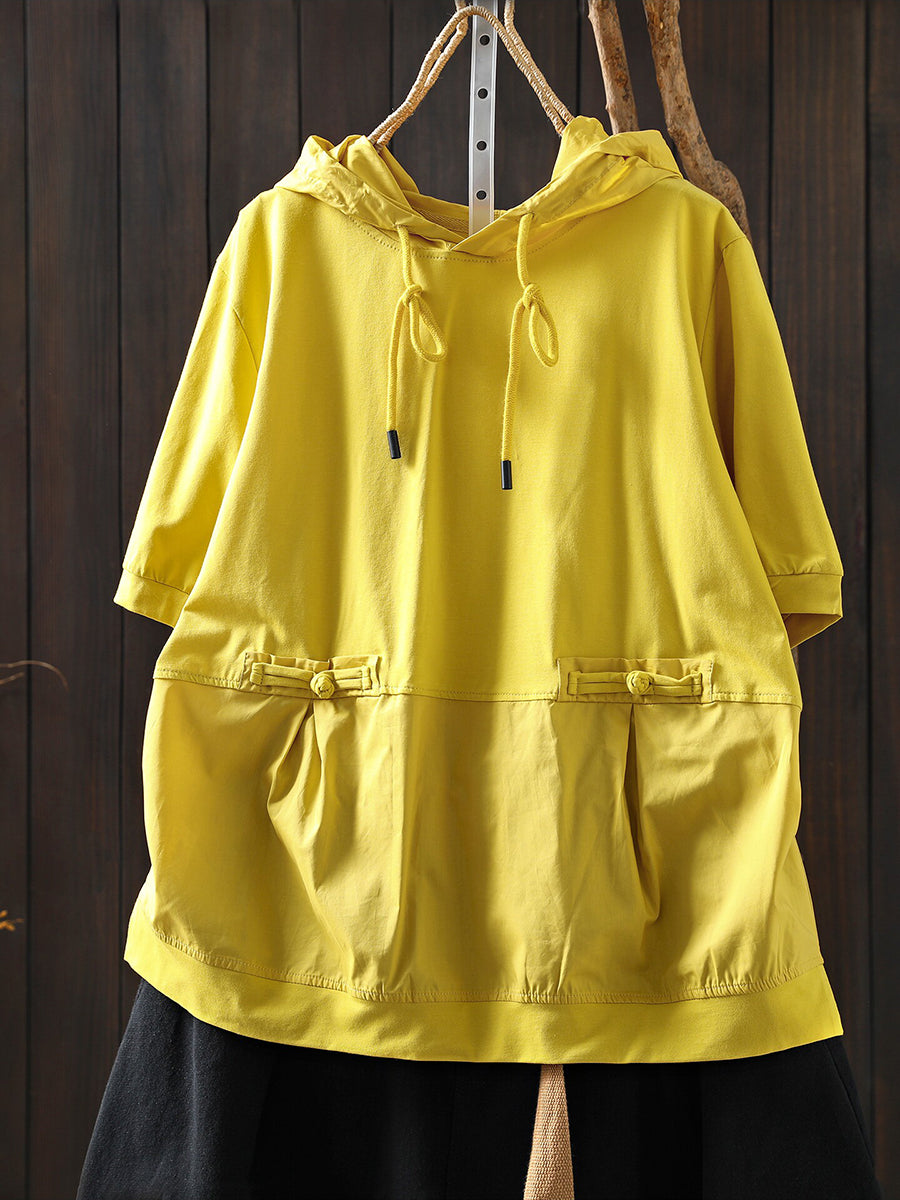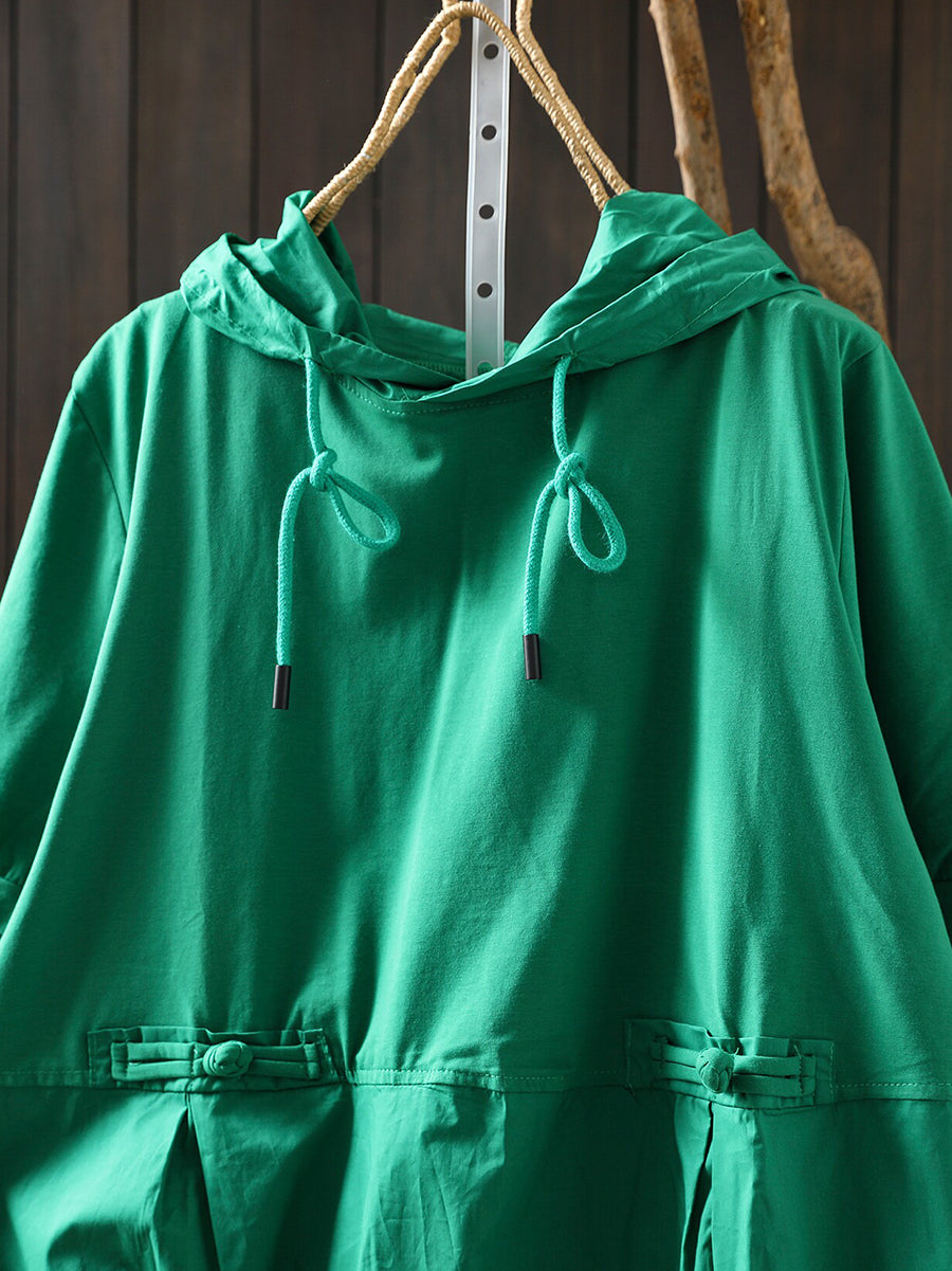 Női nyári lezser tiszta színű 100% pamut kapucnis pulóver