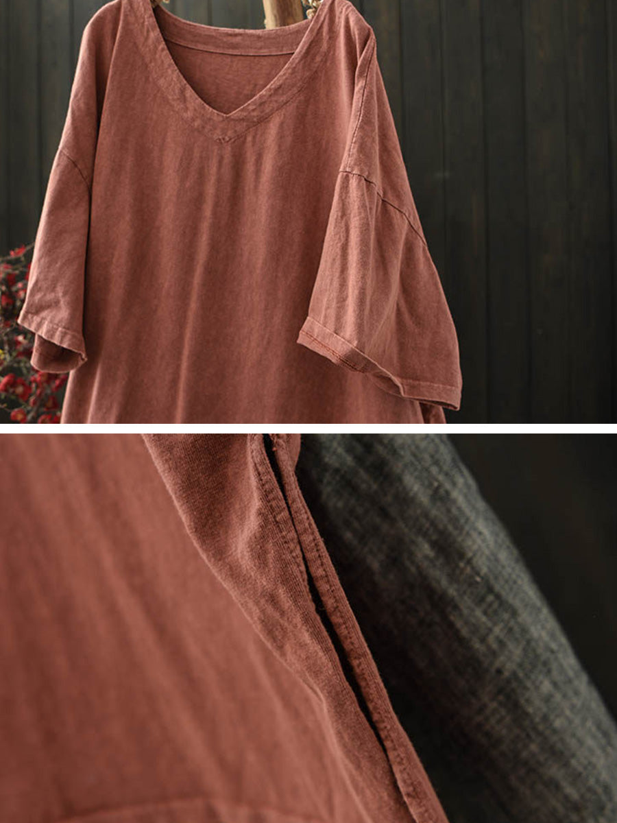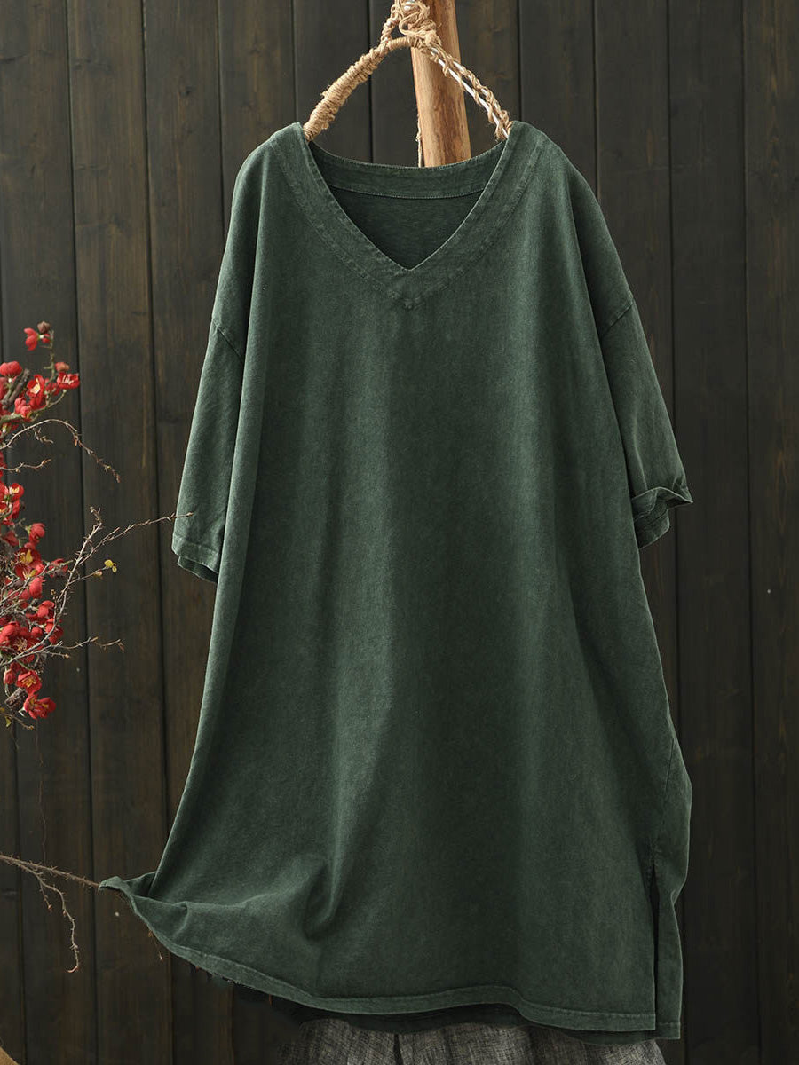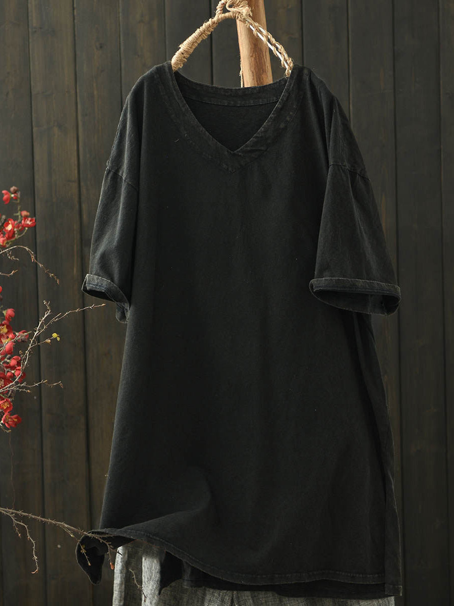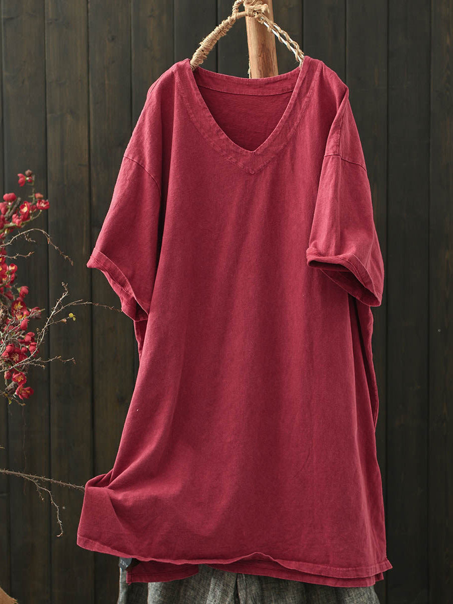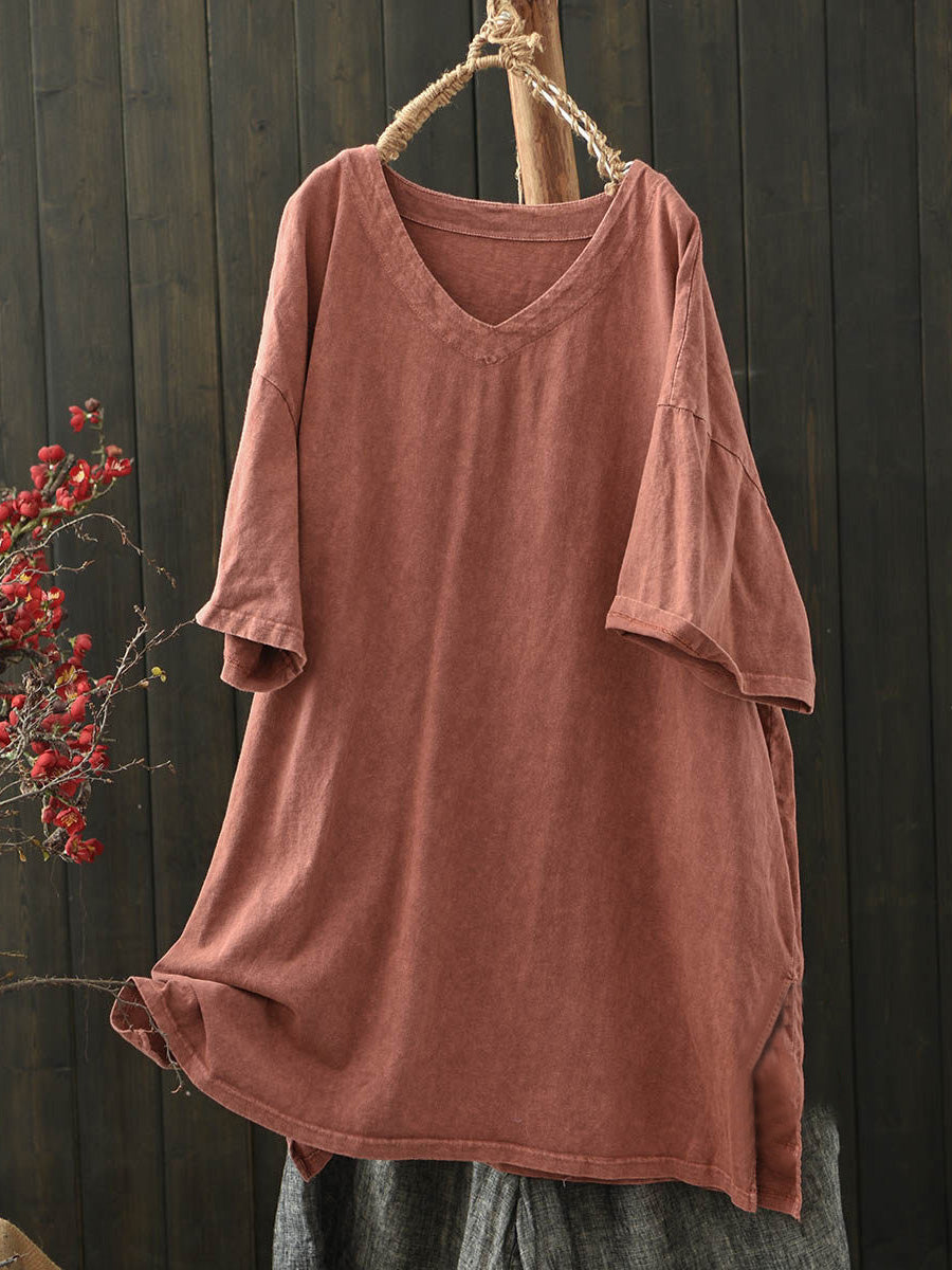 Női nyári lezser tiszta színű V-nyakú pamut ing