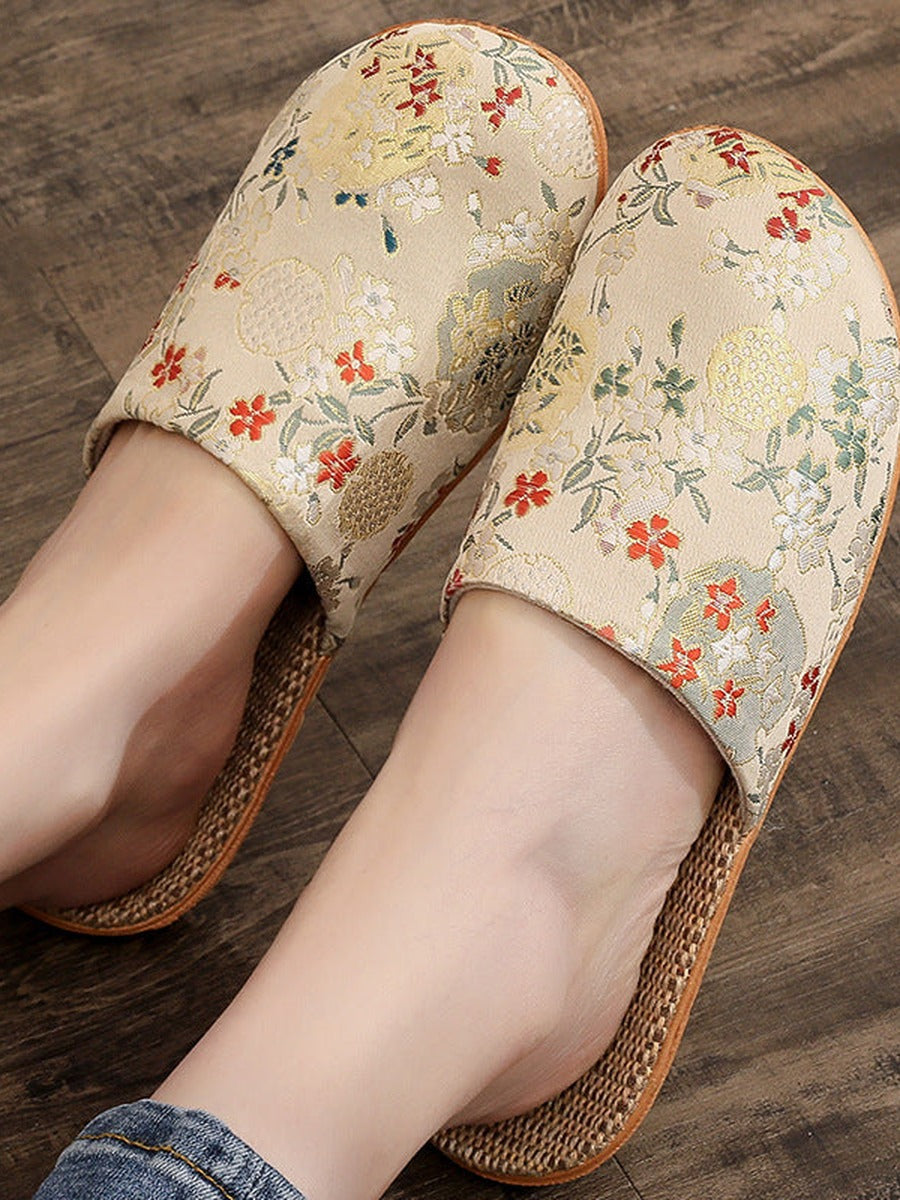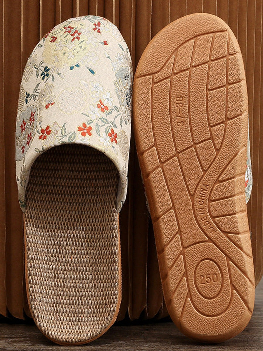 Női Vintage Kínai Stílusú Hímzett Lenvászon Papucsok