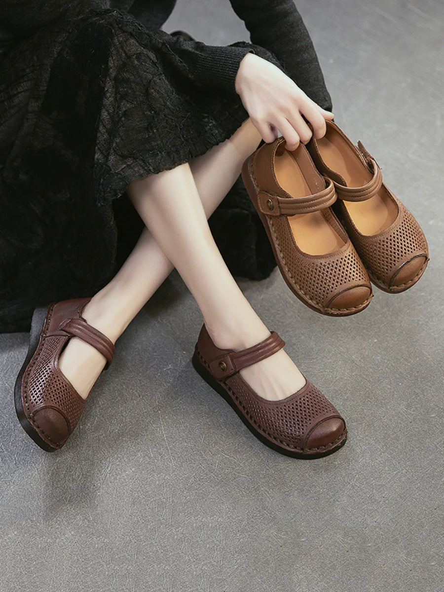 Vorskór úr ekta leðri fyrir konur með lágum hælum