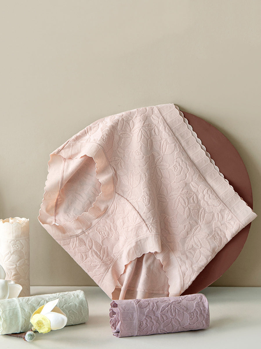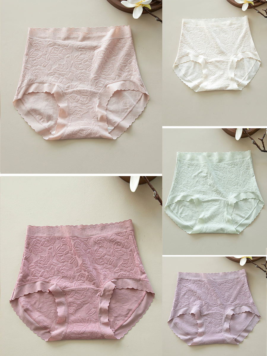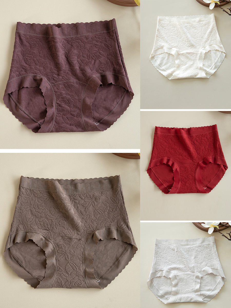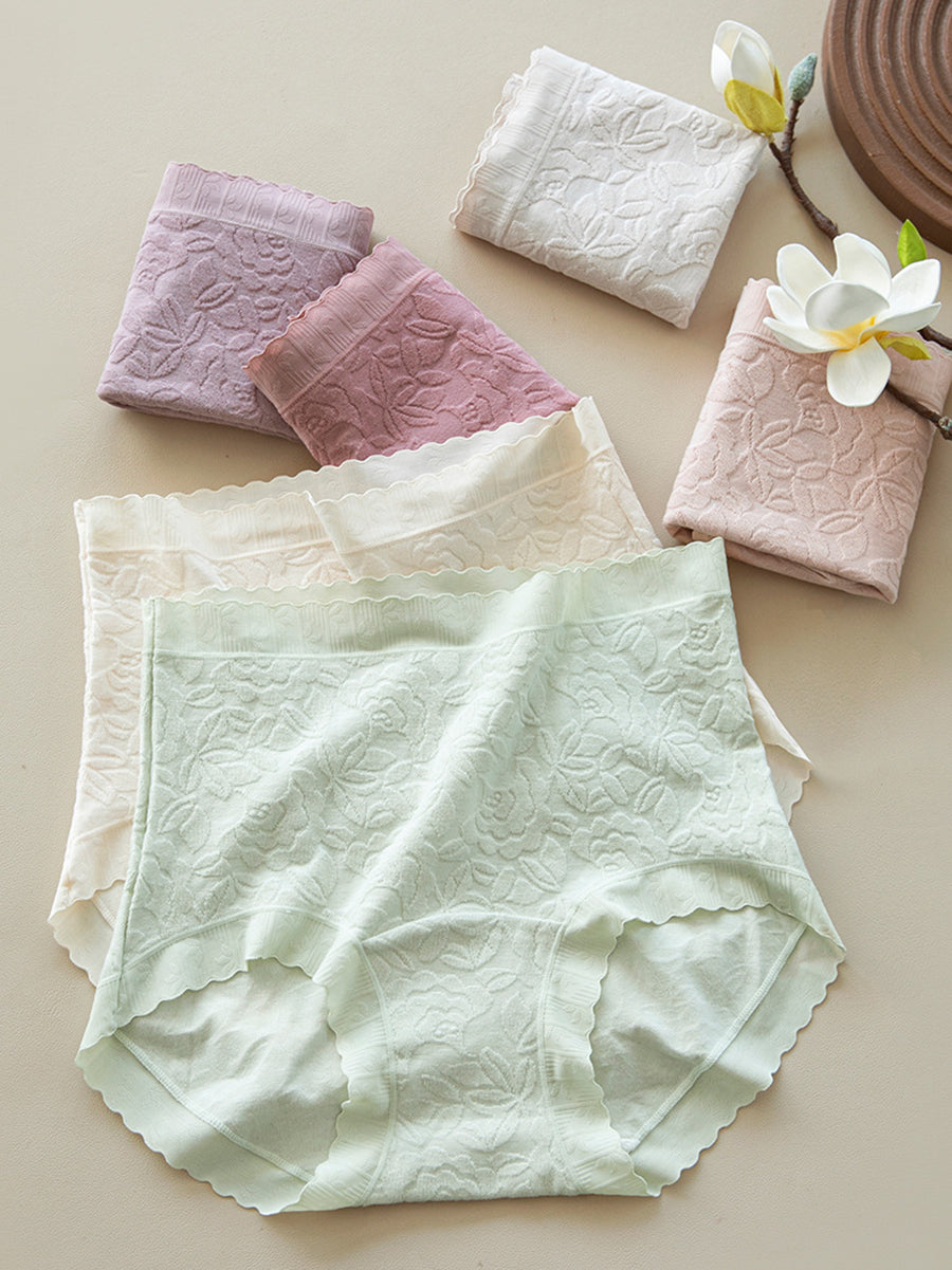 5 stykki kvenna blóm Jacquard hár mitti bómullar nærbuxur