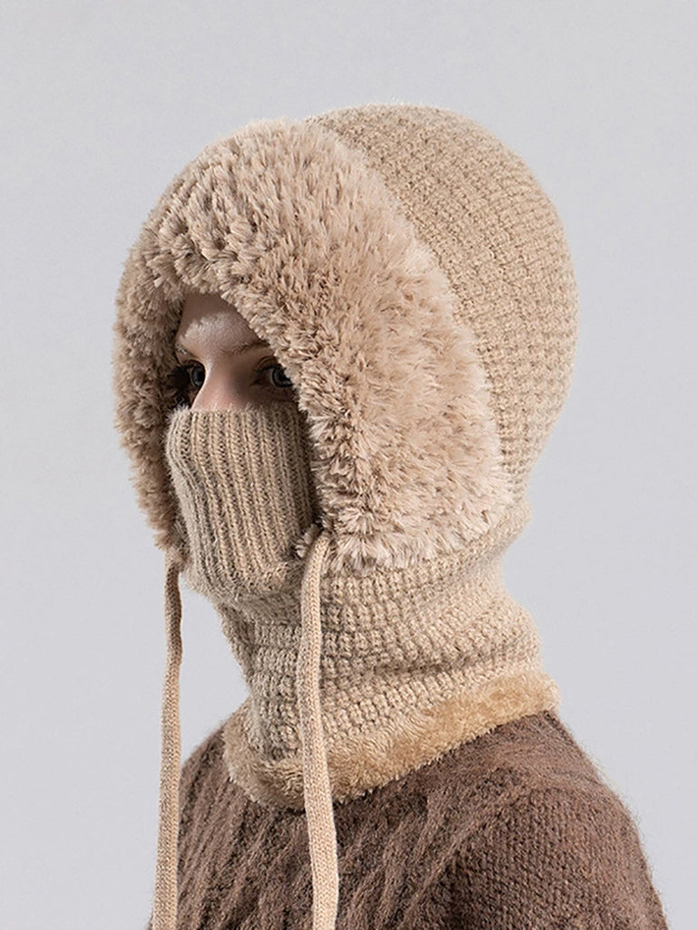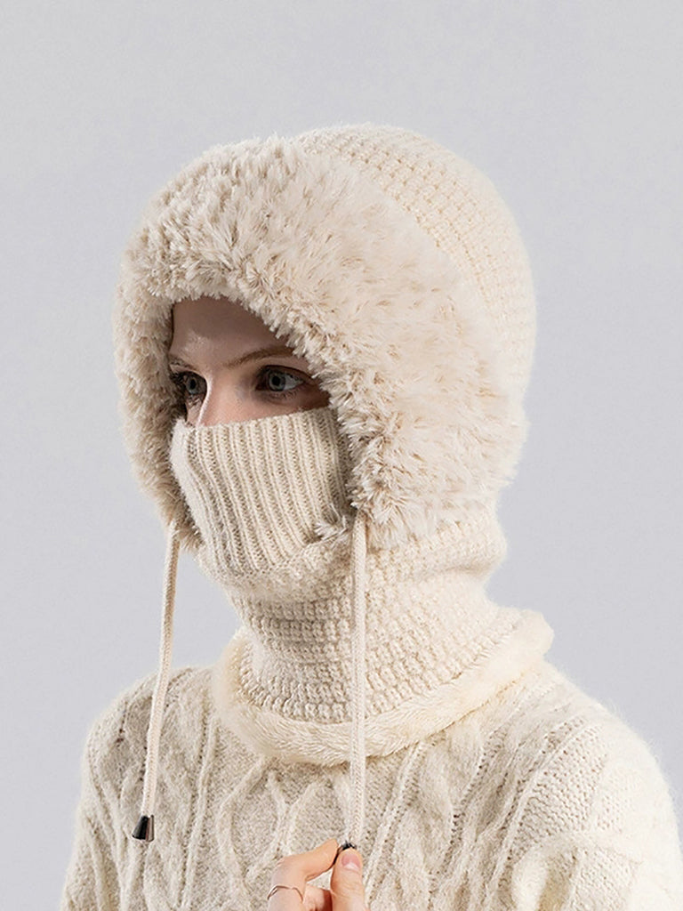 Vetrarhúfa í hreinum lit fyrir konur, hlý prjónuð