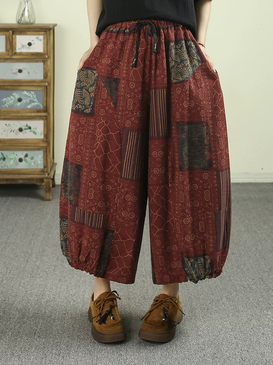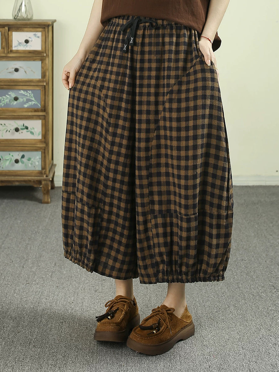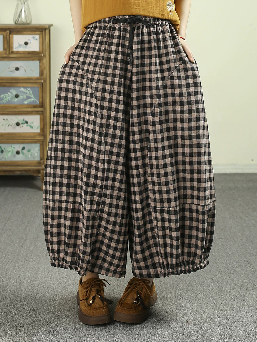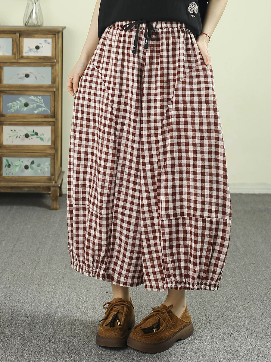 Sumarleg Retro Plaid bómullarbuxur fyrir konur