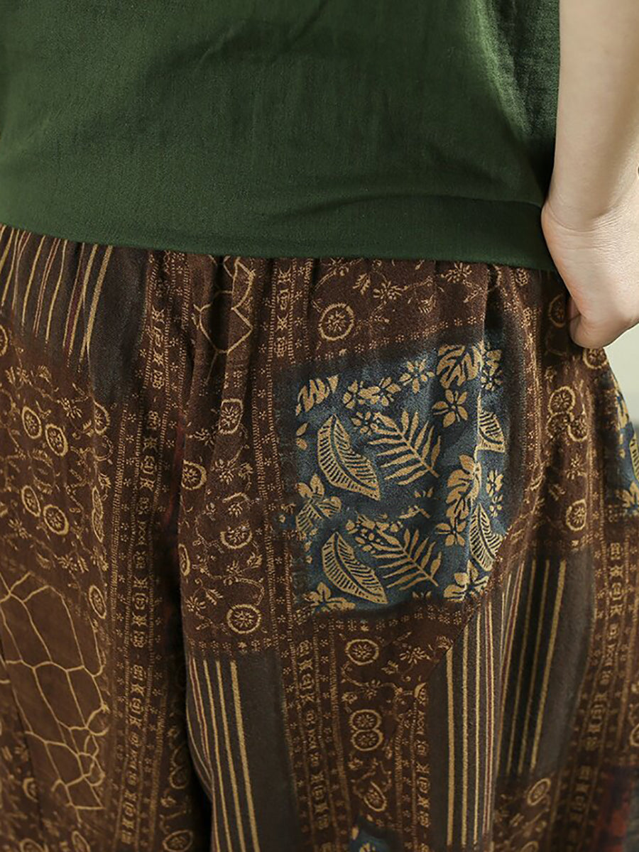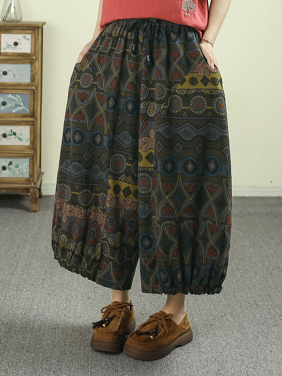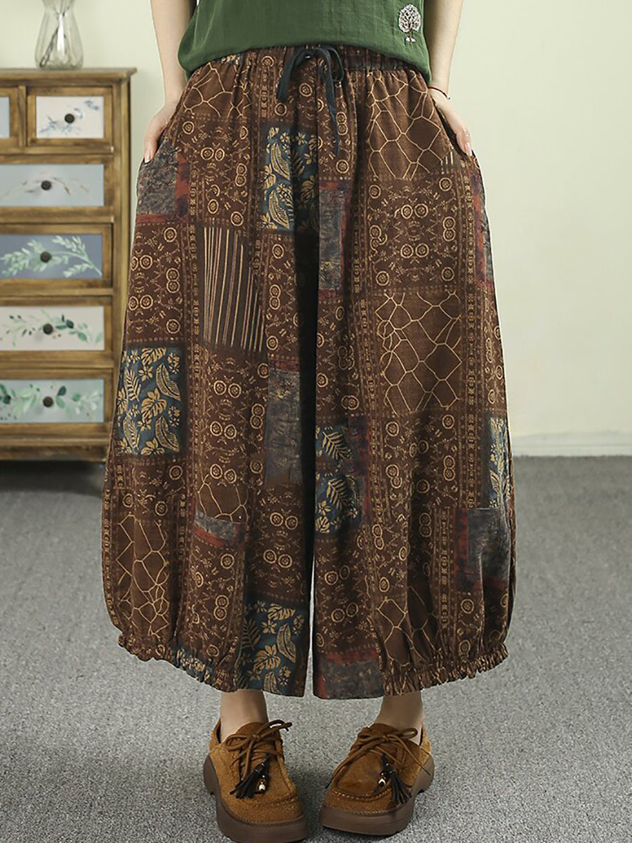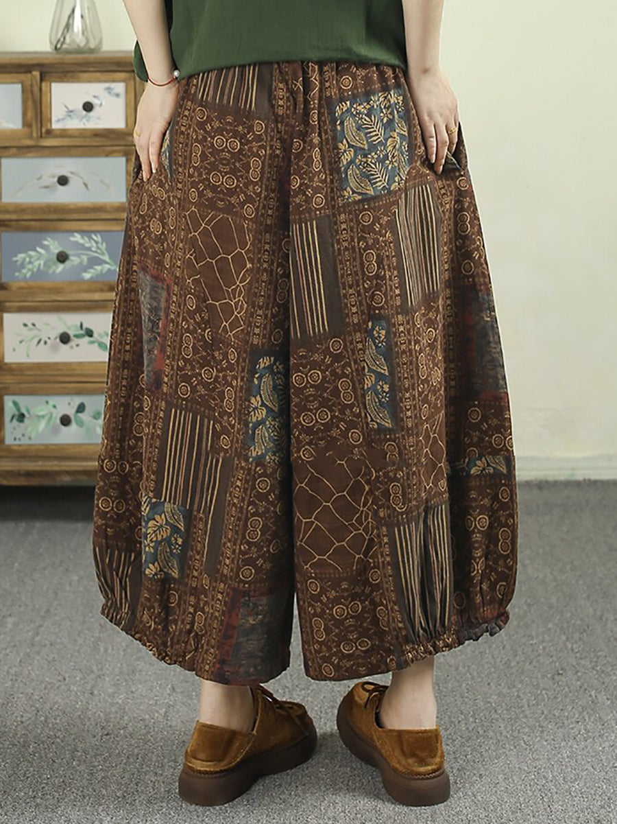 Sumarleg Retro Plaid bómullarbuxur fyrir konur
