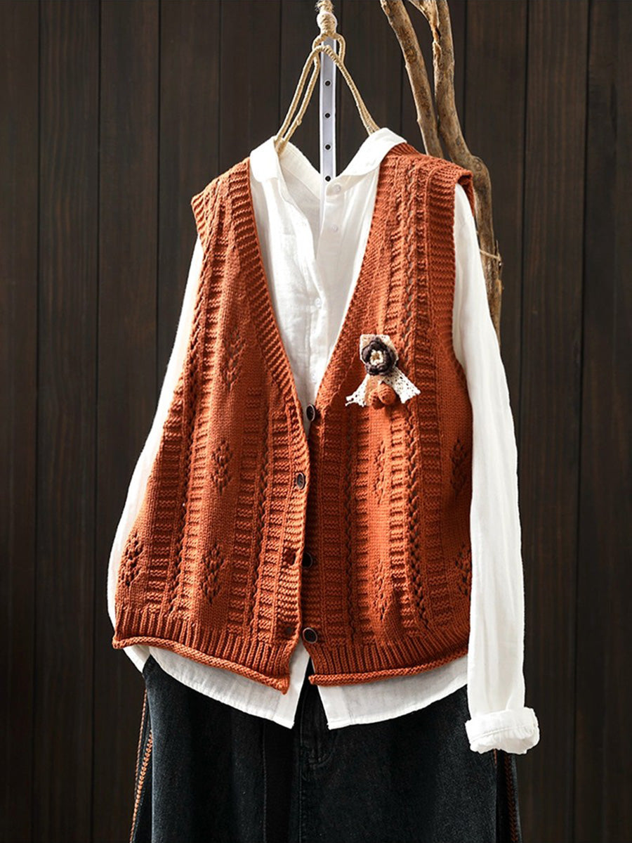 Vorlistarleg prjónavesti fyrir konur með V-hálsmáli