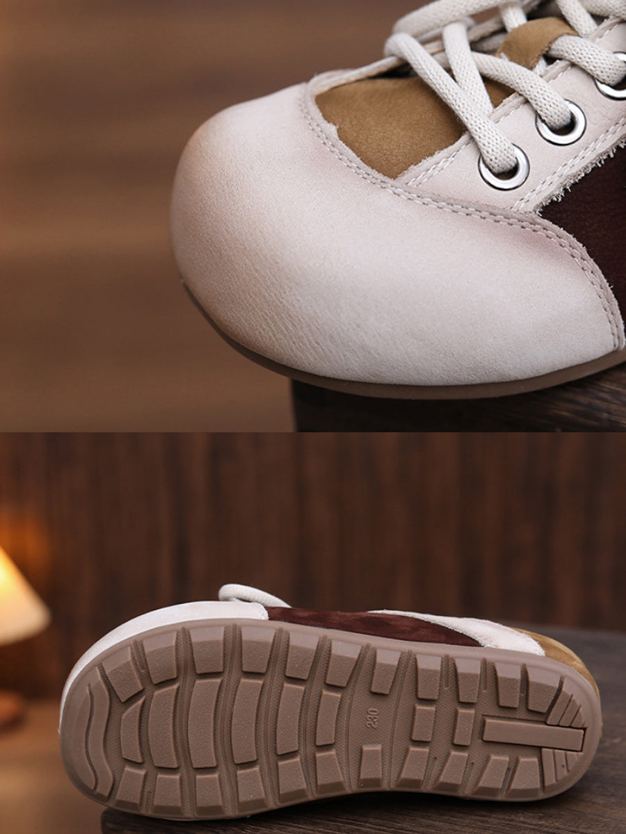 Kvenna frjálslegur litblokk úr ekta leðri flatskór
